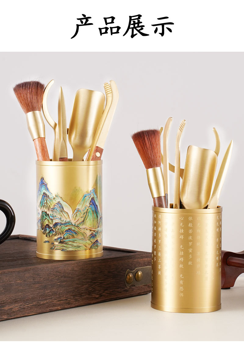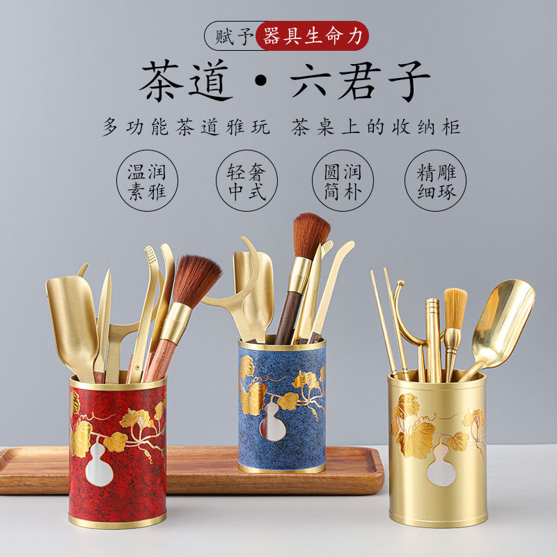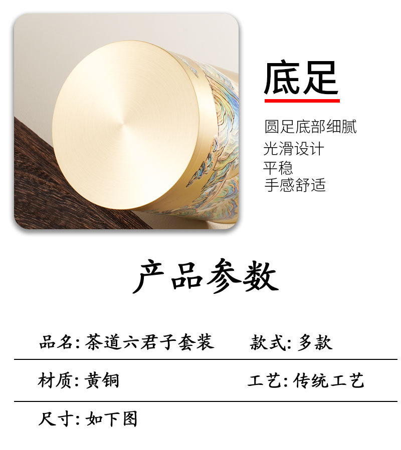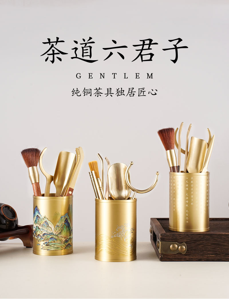 黄铜茶道六君子套装功夫茶具配件6件套茶筒茶刀茶夹茶勺茶笔6君子