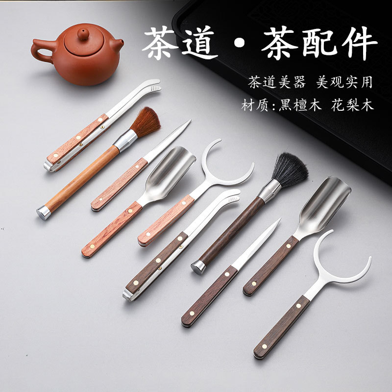 新型ステンレス茶道六君子セット鋼木結合茶クリップ養壺筆工夫茶器部品六君子