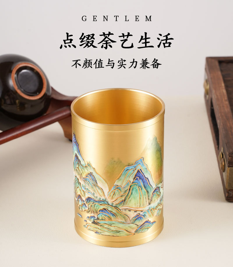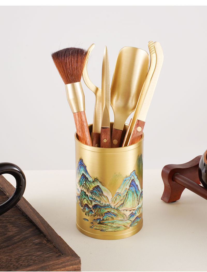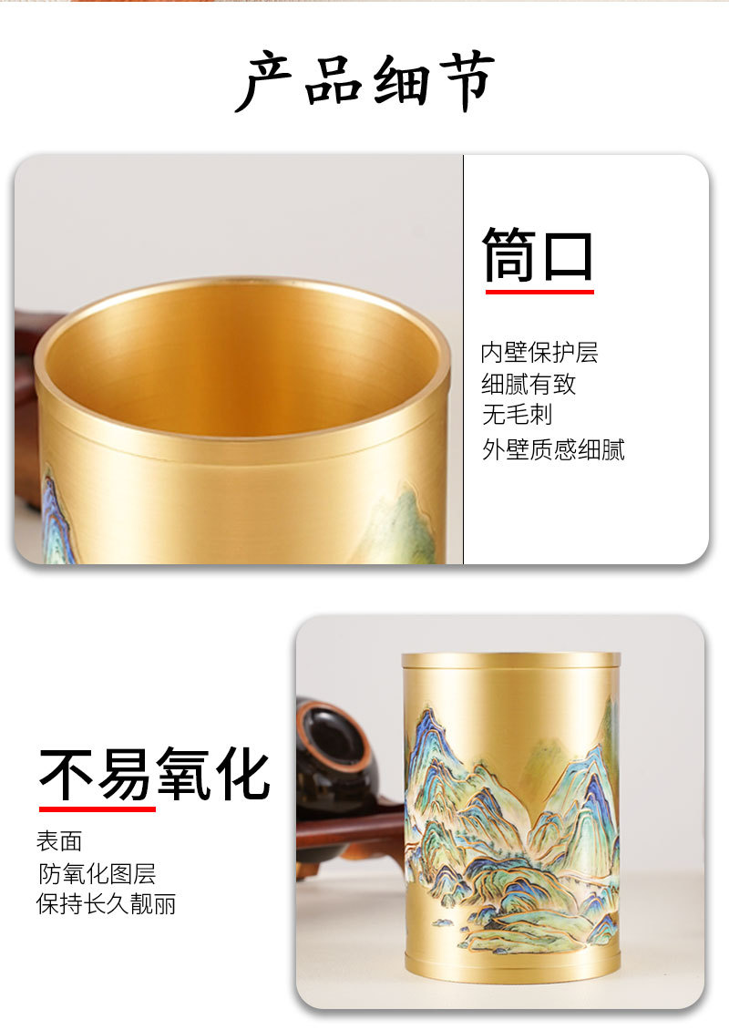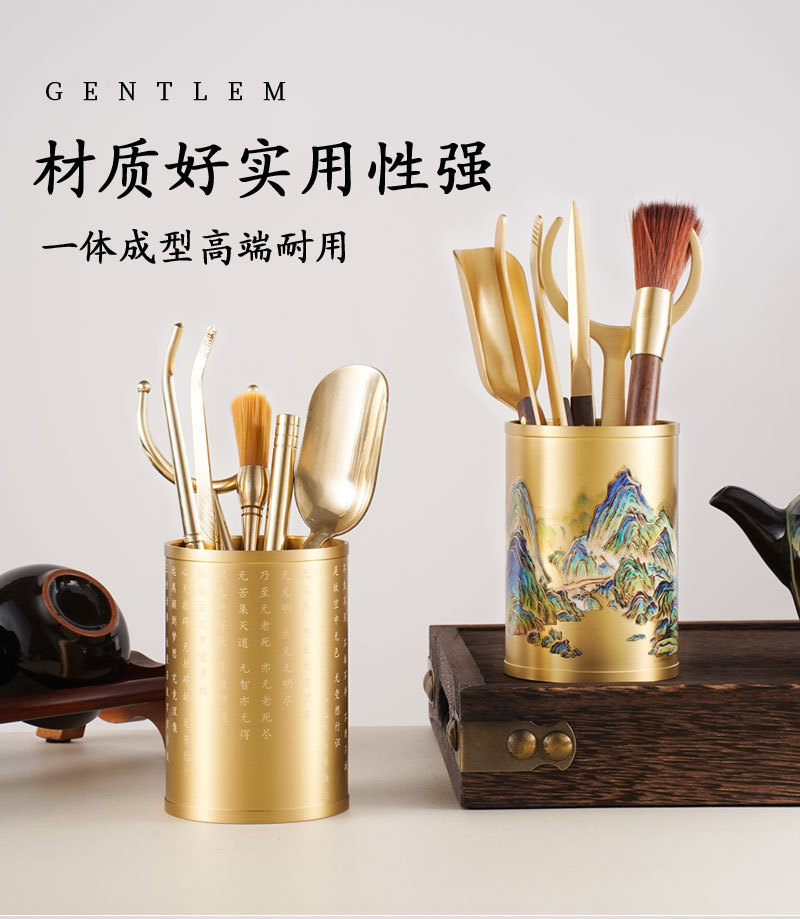 真鍮の筆筒の創意的なアイロンの絵の工芸の高級な事務室は一体の毛筆の収納筒の工夫の茶器の部品を収納します。