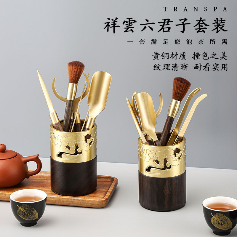 祥雲茶道六君子セット家庭用工夫茶道具真鍮茶道部品実木茶道六君子