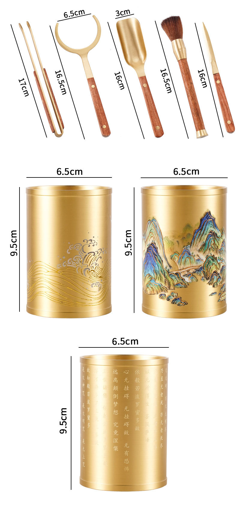 純粋な黄銅の茶道の六君子のスーツの家庭用の工夫の茶器の付属品の銅の茶筒の高級な茶道の6君子