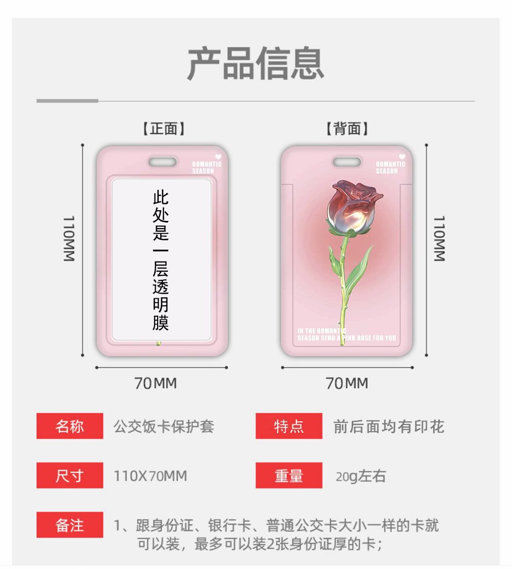 バラのチューリップのハードカードセット学生学校の食事カードの門限地下鉄バスの水道カードの仕事の証明書の保護札
