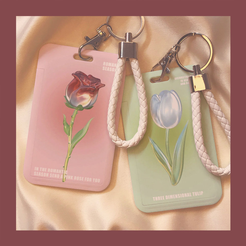 仕様 バラのカードカバー + 白いひものキーホルダー,チューリップカードセット + 白紐キーホルダー
