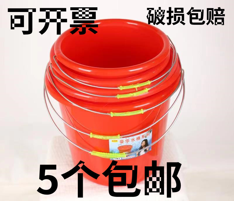 家庭用の赤い手提げプラスチックのバケツは日用デパートの学生がバケツを持って水を貯蔵してきれいに洗車します。
