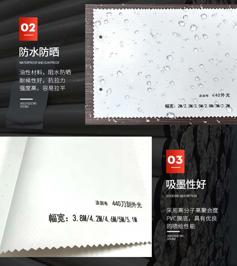 440Gナイフカットフィルム、510Gバナーフィルム、広告用フィルム、PVC複合ライトボックスフィルム、UV耐光ナイフカットフィルム、高輝度UV耐光フィルム