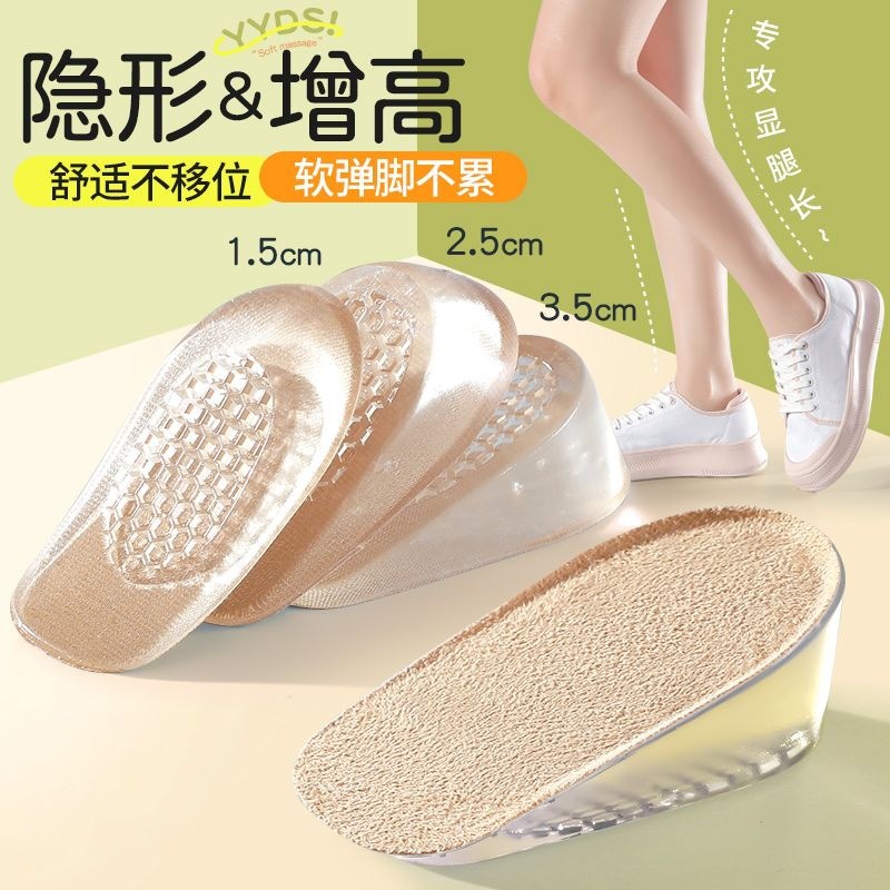男性と女性のための粘着性シリコン身長増加インソール、目に見えないインナー身長増加ハーフパッド、足が疲れにくい、スポーツシューズ専用