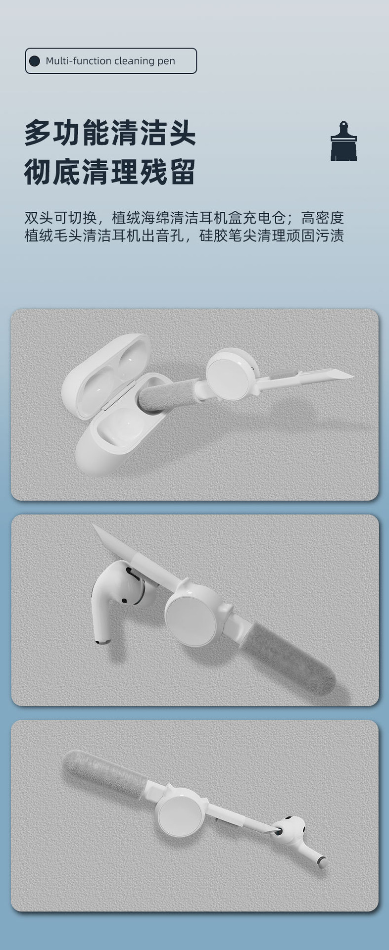 Bluetoothイヤホン清潔ペン耳栓携帯電話押し引き伸縮ペン除塵ブラシデジタルパソコンキーボード清潔ブラシ