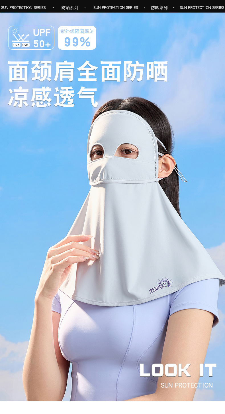 新型日焼け止めマスク全顔首保護夏騎行マスク運転顔ジニ女氷糸通気マスク