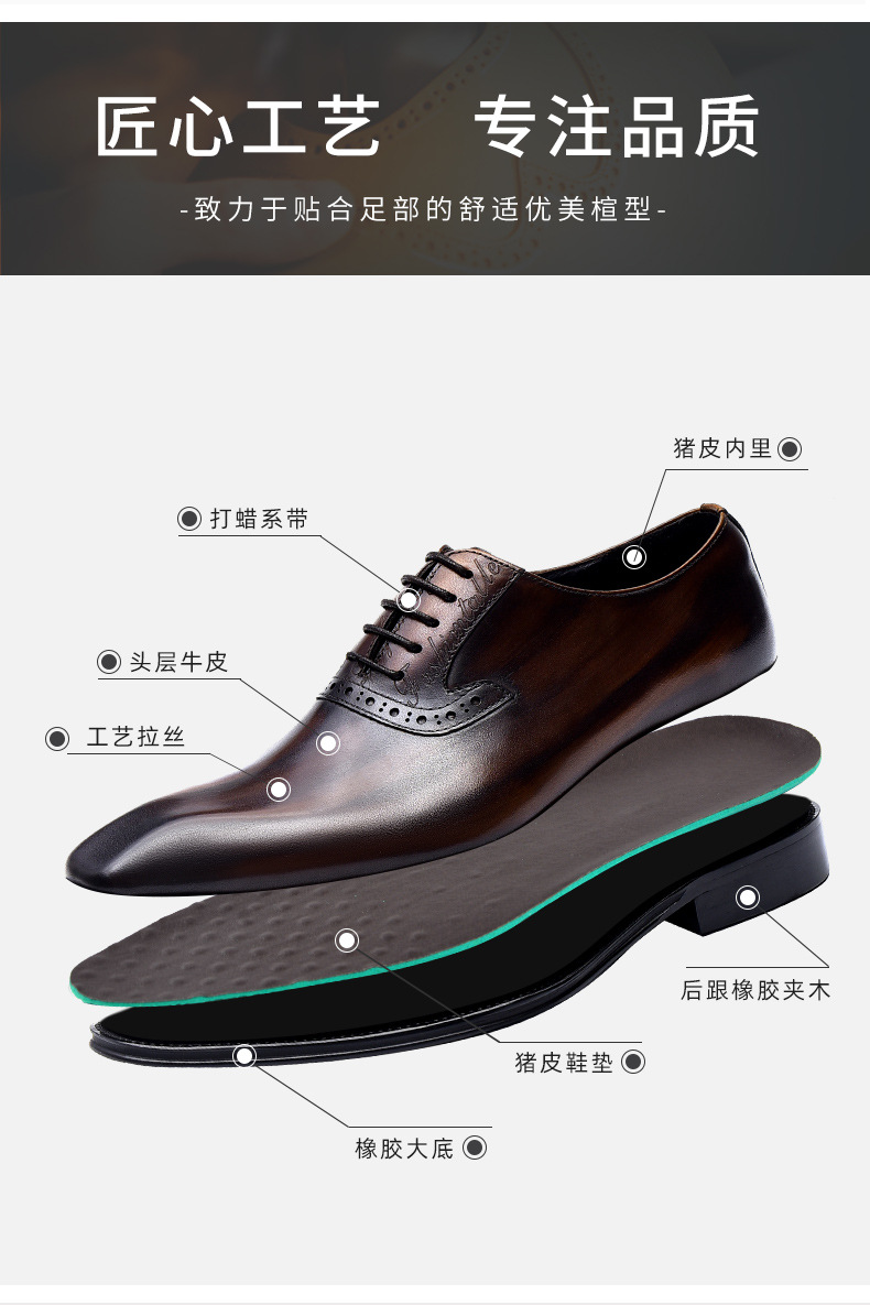 [ビッグセール] 手作り革靴メンズ第一層牛革ビジネスフォーマル本革彫刻英国レトロ結婚式スーツシューズ