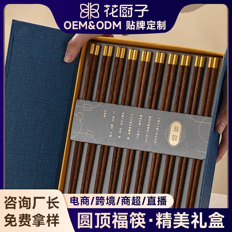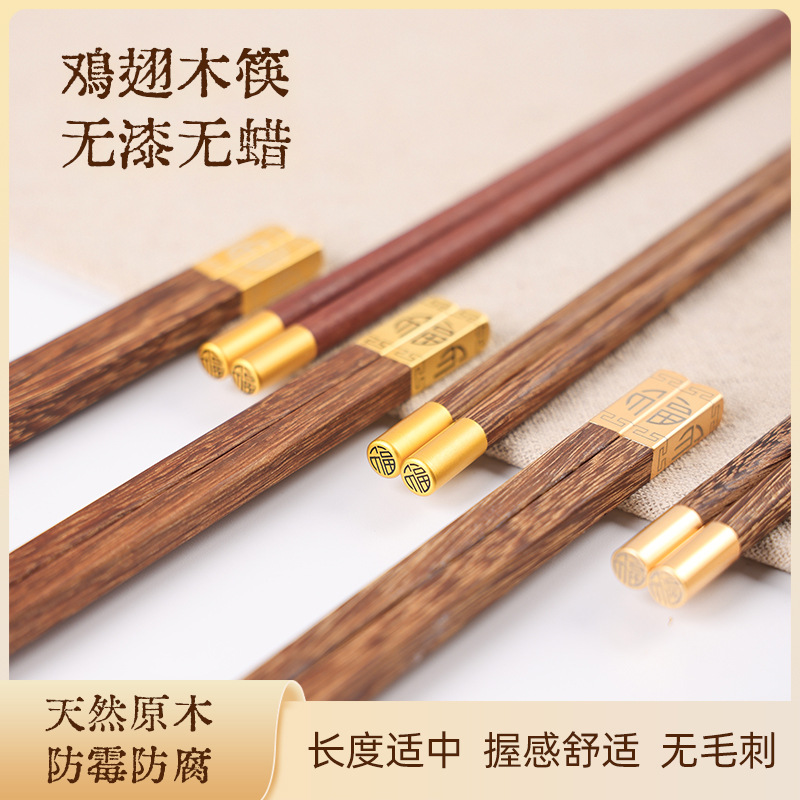 丸頂福鶏翅木箸家庭用天然無漆無ワックス実木滑り止め礼箱新円福木箸