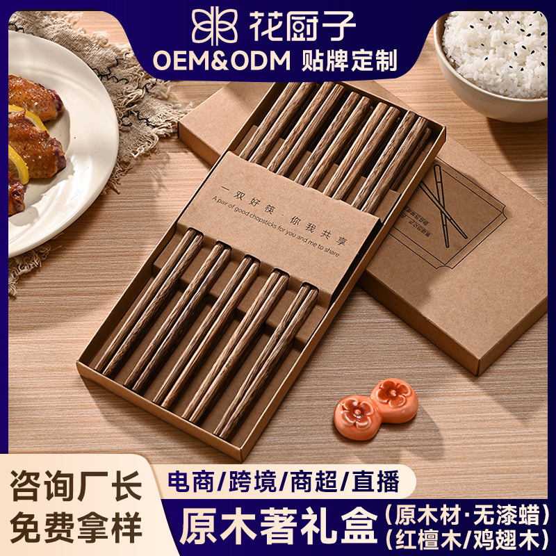 家族写真チキンウィングウッド箸、家庭用滑り止め無垢材紫檀抗菌防カビマホガニー箸、カスタム卸売