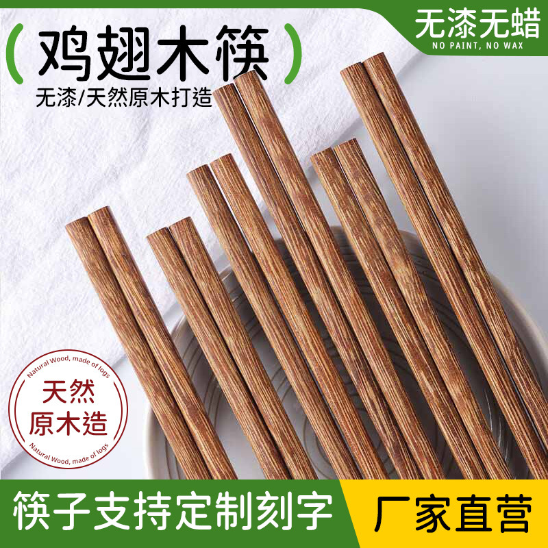 鸡翅木筷子儿童筷子家用实木无漆无蜡红檀木筷子厂家批发方筷餐具