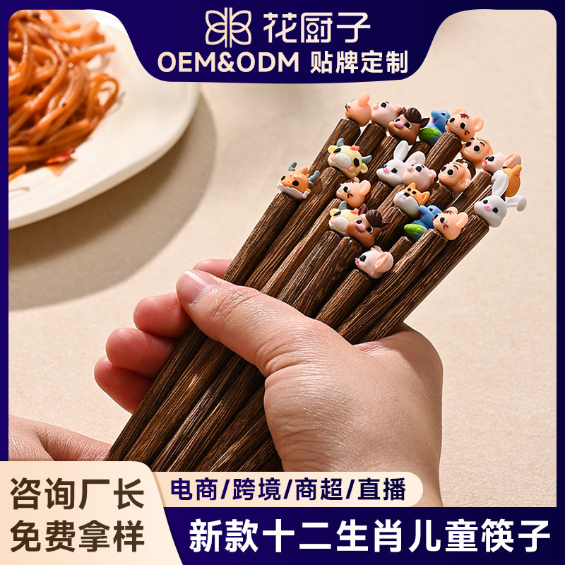 鶏の羽の形をした木製箸、かわいい漫画風、高級感のある家庭用無垢材、子供用分離食器、十二支木製、卸売、紅檀木