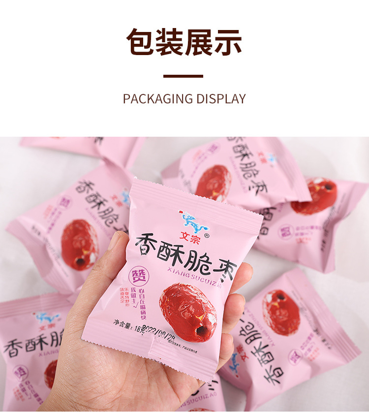 メーカーが提供している香ばしいナツメの年間間食18gのショートニングナツメのばら積独立包装は核のないサクサクしたナツメである