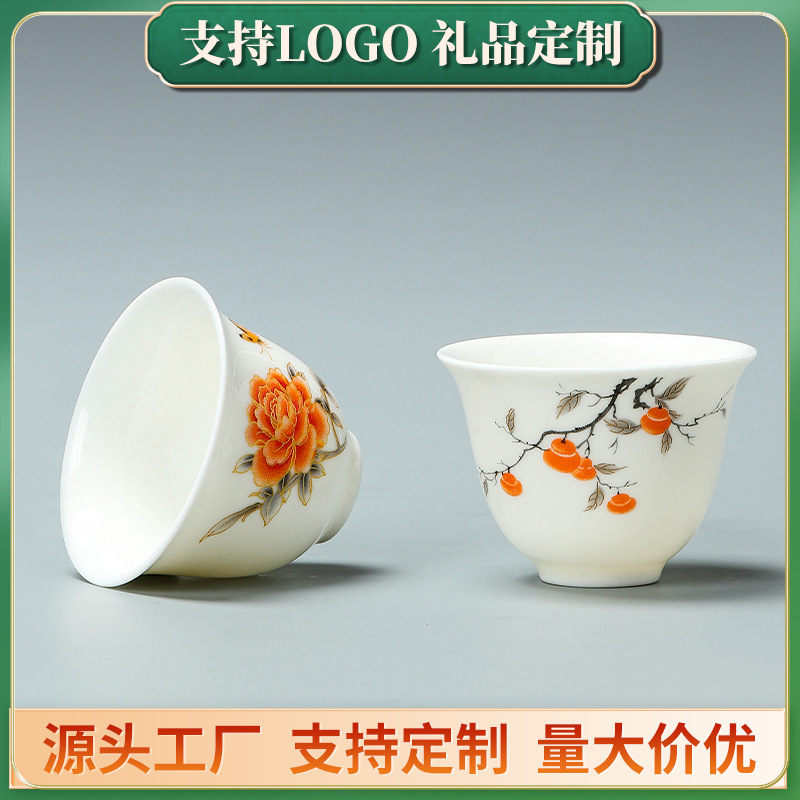 羊脂翡翠白磁カンフー茶カップホームオフィスリビングルームお茶を飲むカップ会社イベントロゴギフト