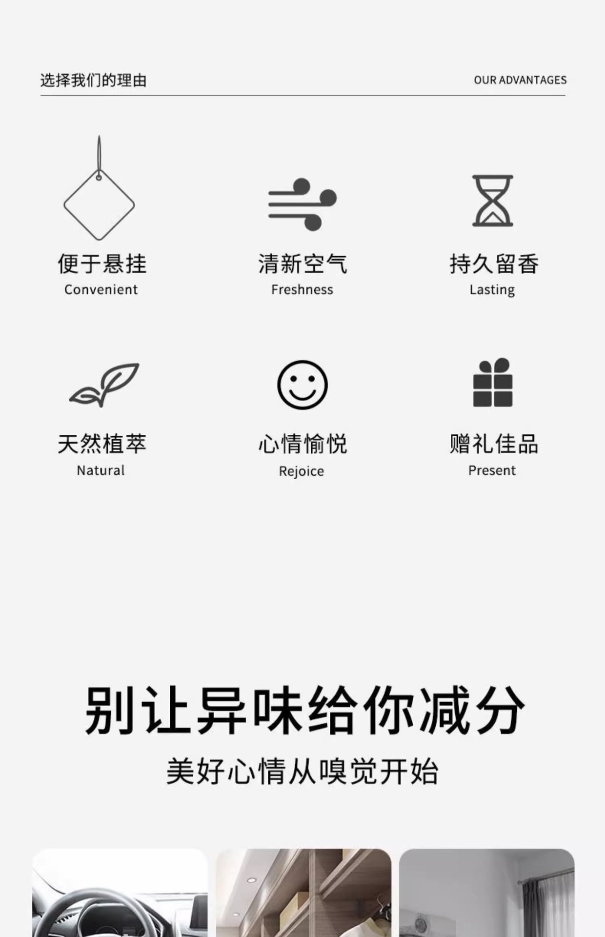 車の香りの切れの祝福の言葉の香薫の持続的な淡い香りの車の香薫の車の中で飾りをつけて異臭の雰囲気を取り除きます。