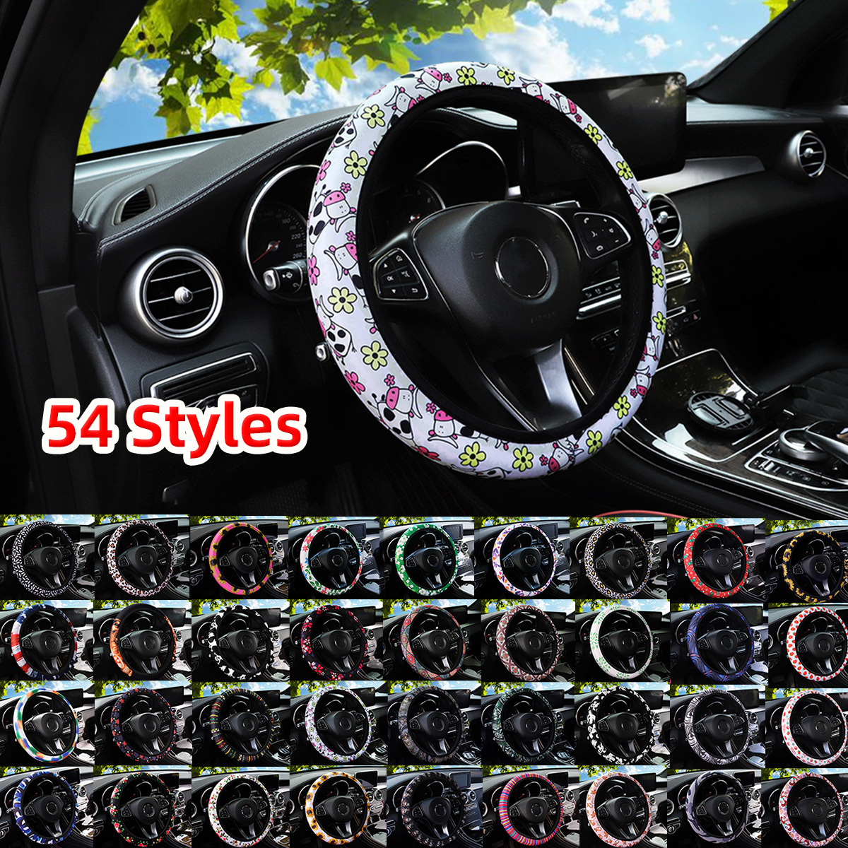 2025 ガールズ特別な車のステアリングホイールカバー甘いプリントインナーリムレスハンドルバーカバーユニバーサルモデルアマゾンクロスボーダー
