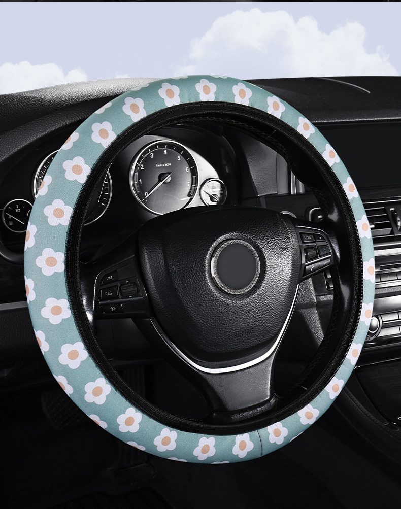 デイジー自動車ハンドルカバー綿麻通気滑り止め車用ハンドルカバーかわいい自動車ハンドルカバー