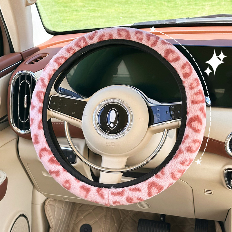跨境汽车方向盘套毛绒豹纹高级感方向盘把套保暖加热通用方向盘套