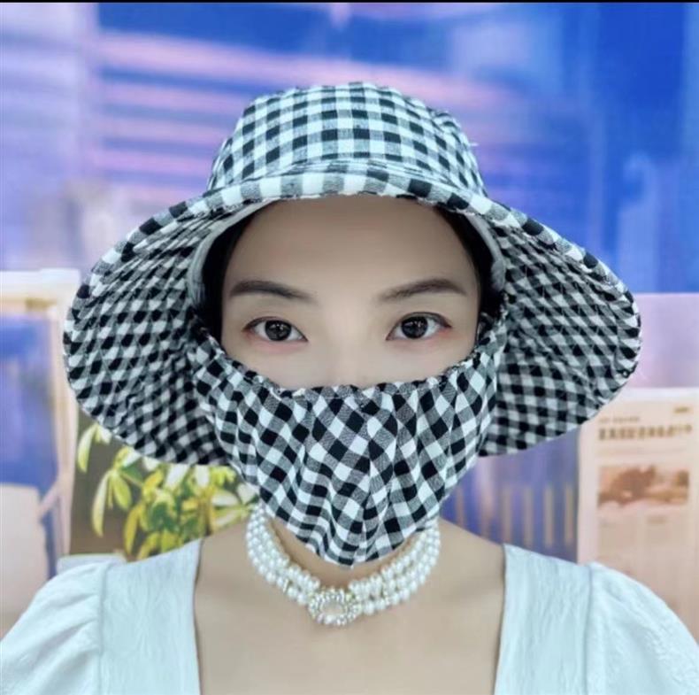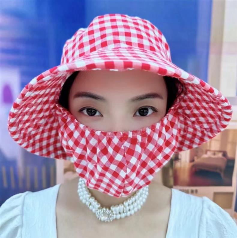 ベトナム日焼け止めマスク帽子夏の女性日焼け止め帽子顔を隠す紫外線防止太陽帽子採茶帽子