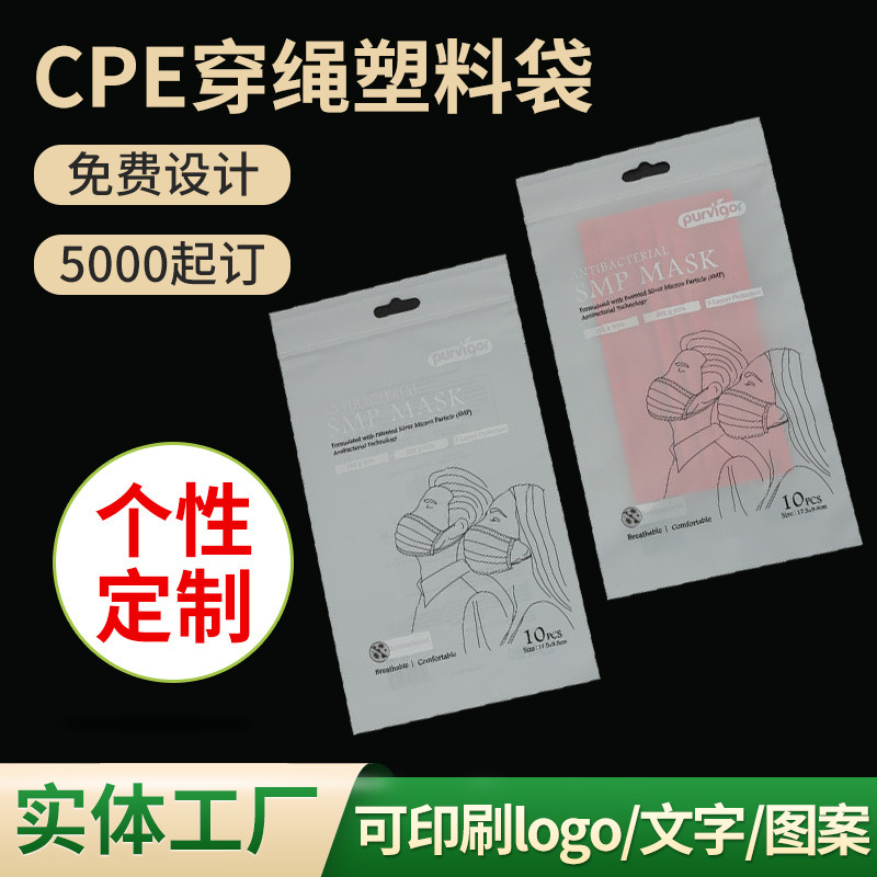 卸売使い捨てマスク包装袋 CPE 骨縫いロープビニール袋カラー印刷袋プラスチックジップロック袋