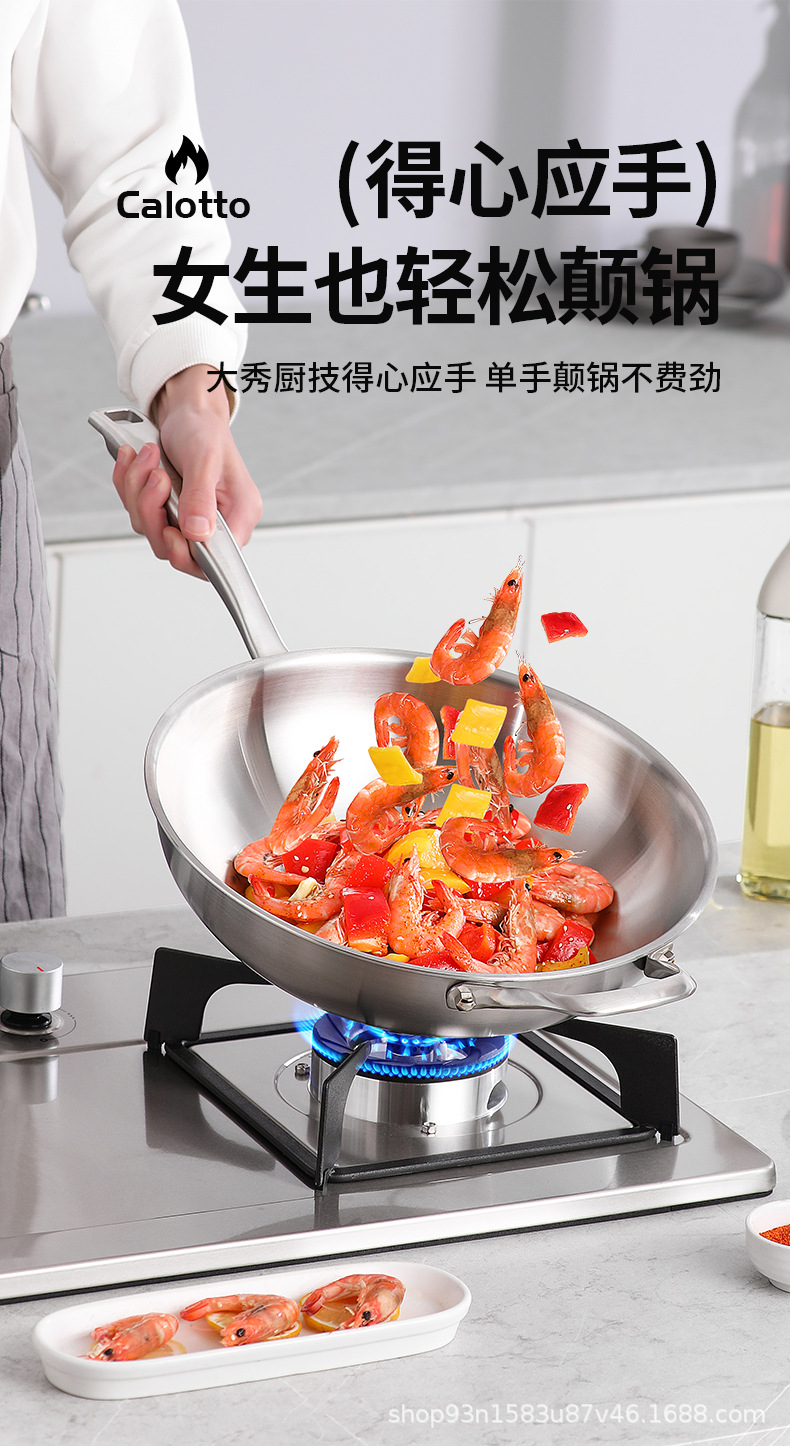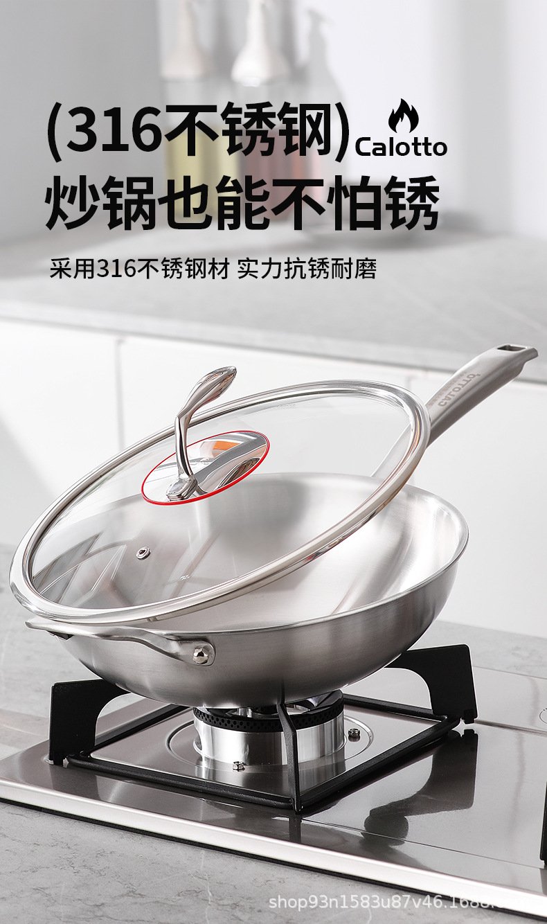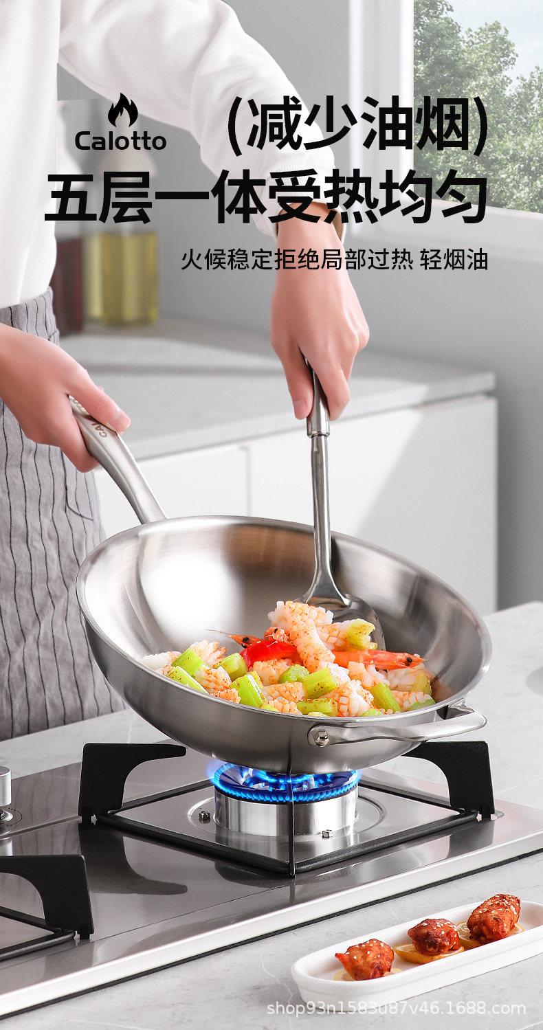 カルロ図316ステンレス炒め鍋は鍋にくっつかないコーティングなし炒め物五層鋼炒め鍋ガス丸底炒めスプーン