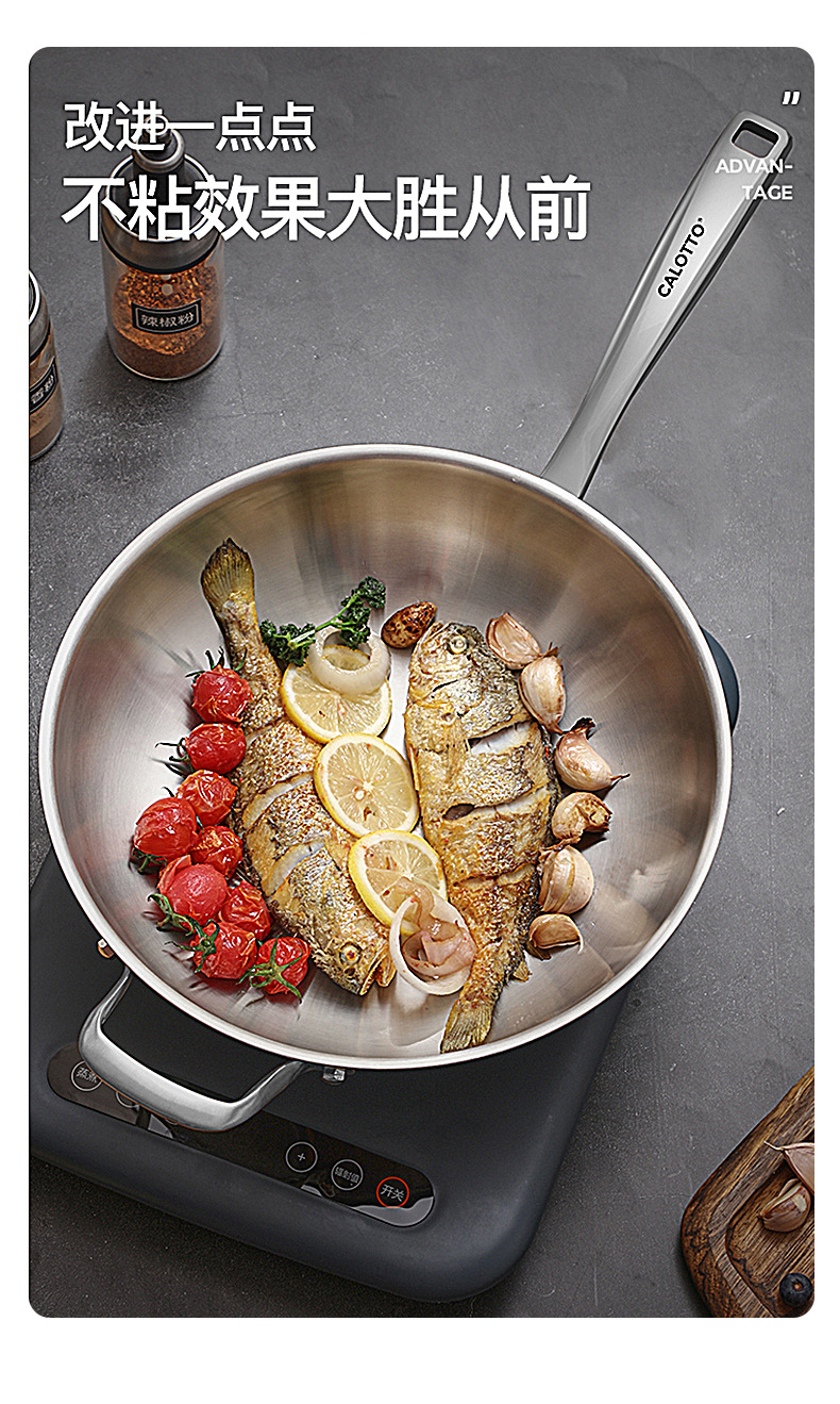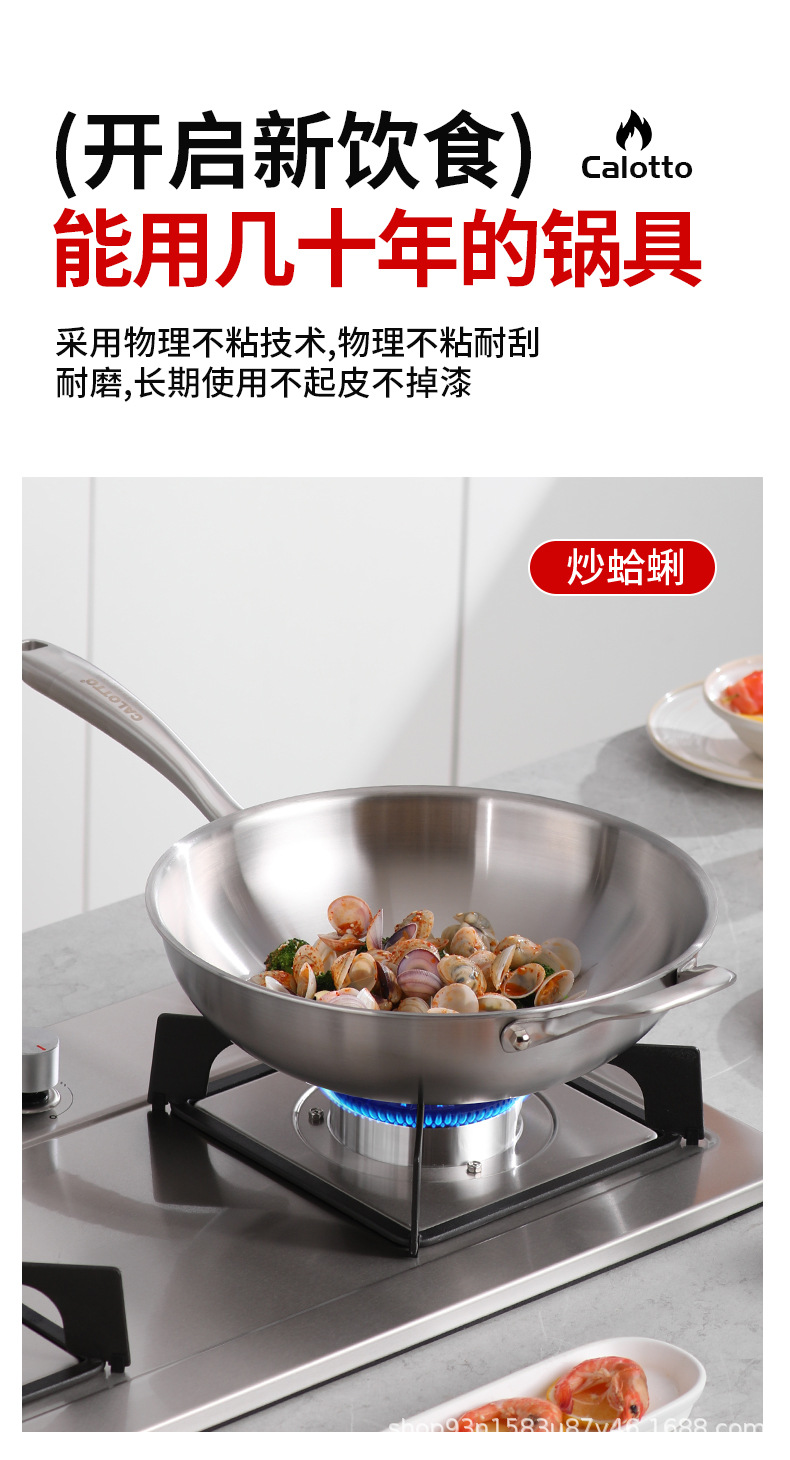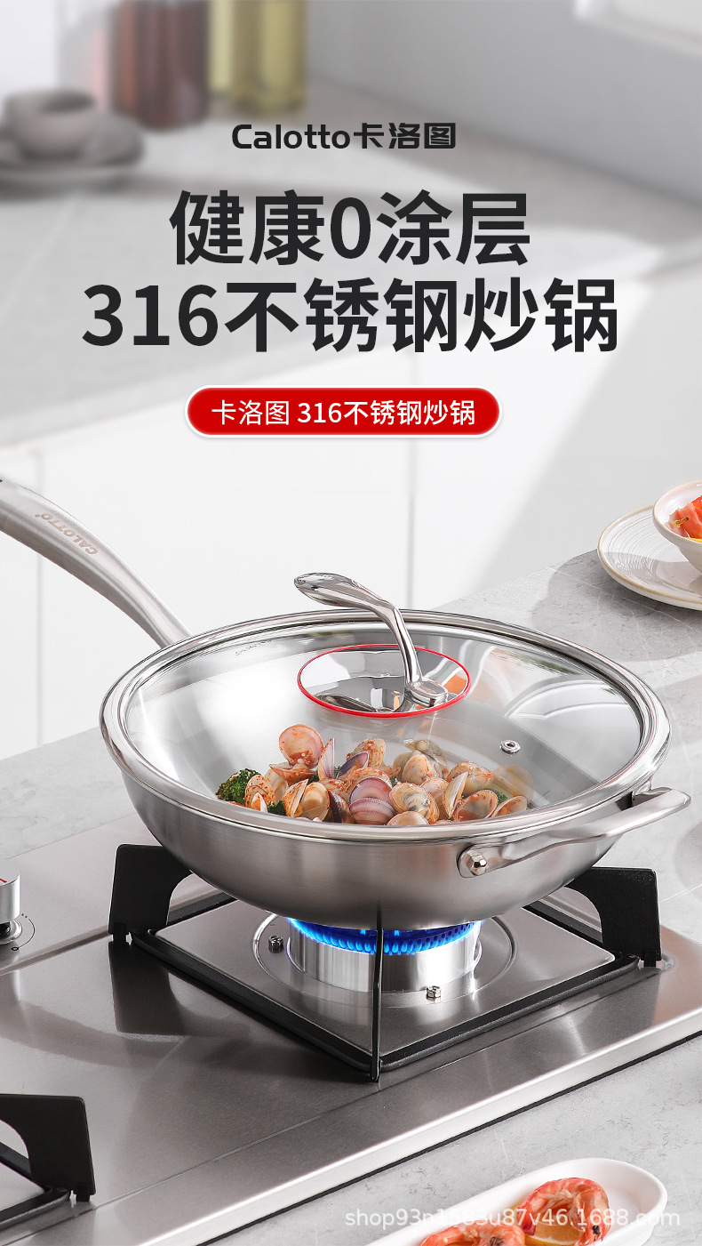 カルロ図316ステンレス炒め鍋は鍋にくっつかないコーティングなし炒め物五層鋼炒め鍋ガス丸底炒めスプーン
