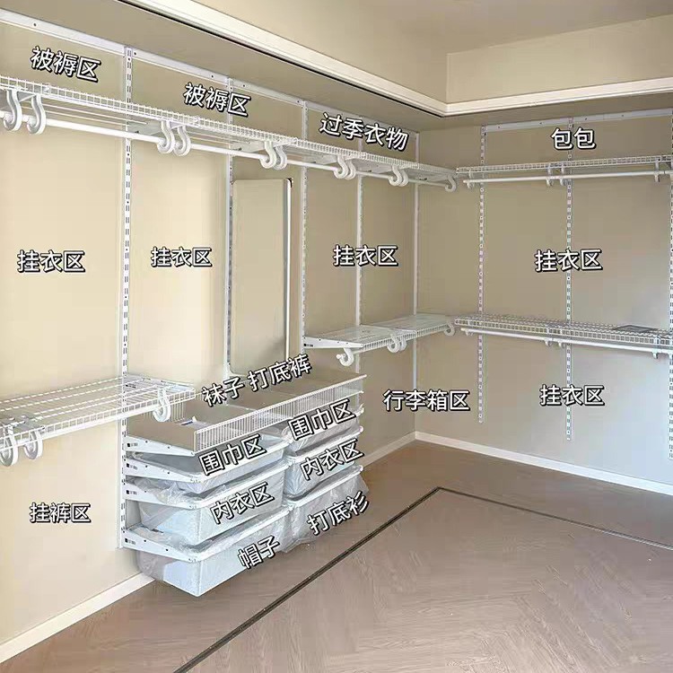 ミニマリストメタル衣類収納ネットバスケット収納オーガナイザークローゼットウォークインクローゼットアクセサリーカスタムメイドワードローブ