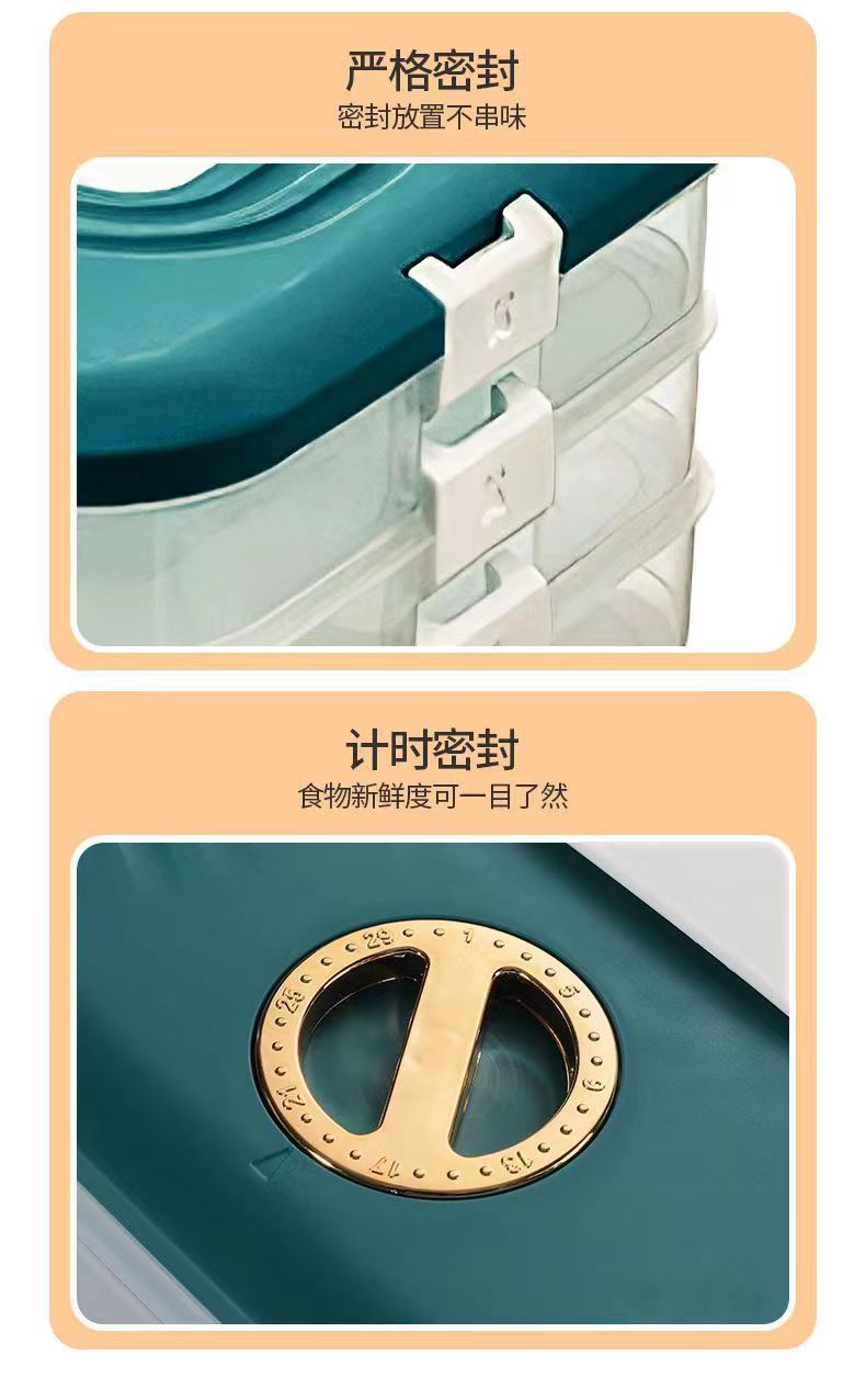時間を計ることができる大容量の新鮮な箱の手提げ式の台所のギョーザの皿の収納箱の多層の組み合わせの冷凍ギョーザの箱