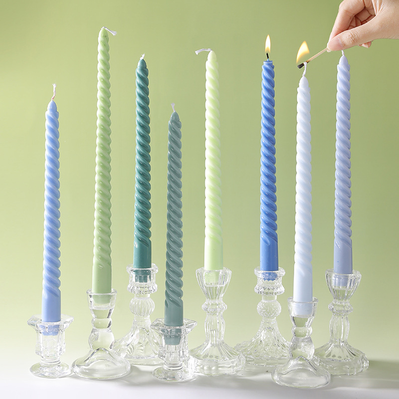 30CM欧式螺旋长杆蜡烛无烟无味莫兰迪彩色蜡婚礼宴会节日锥形蜡烛