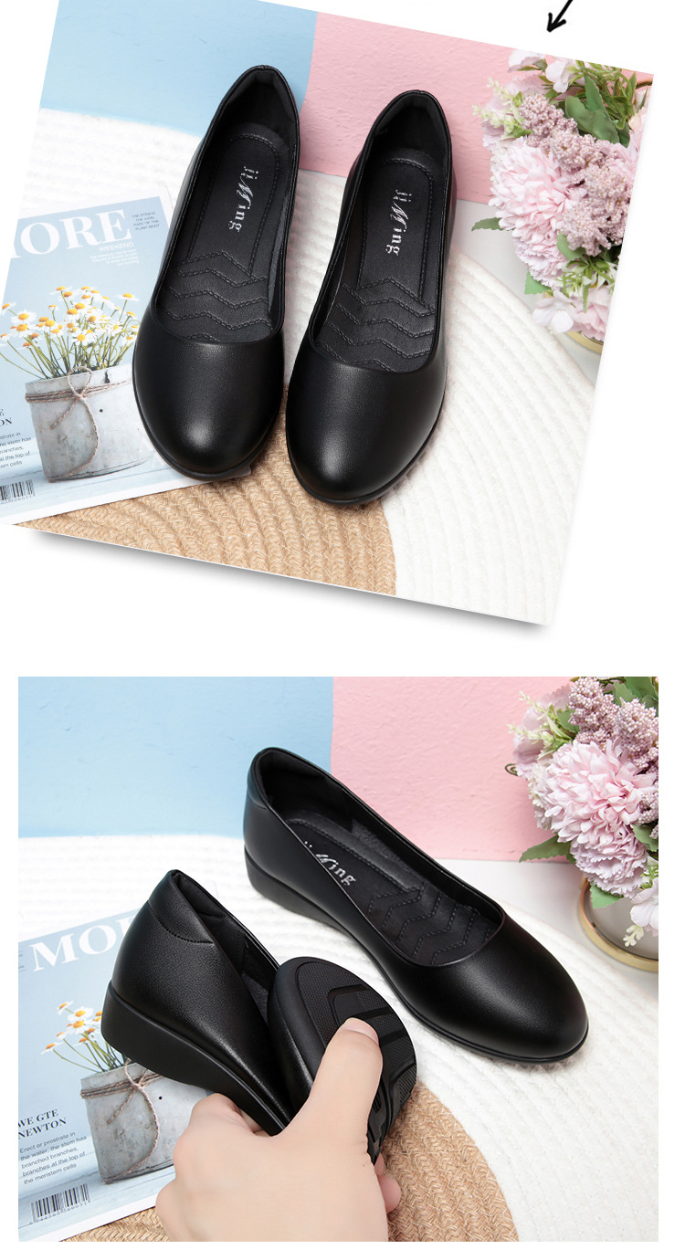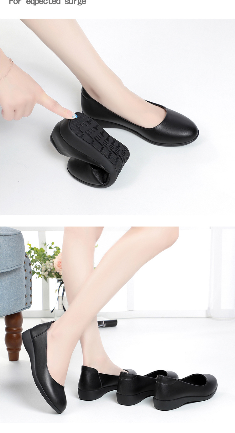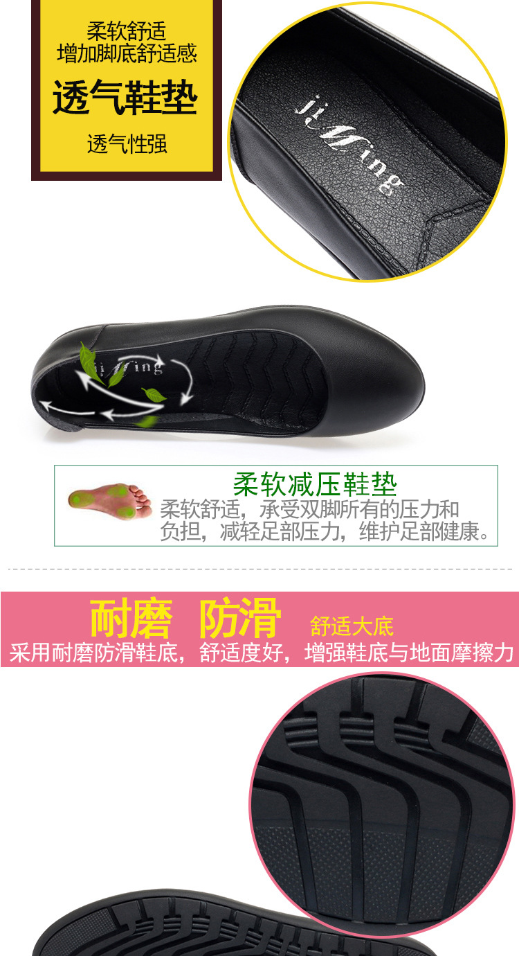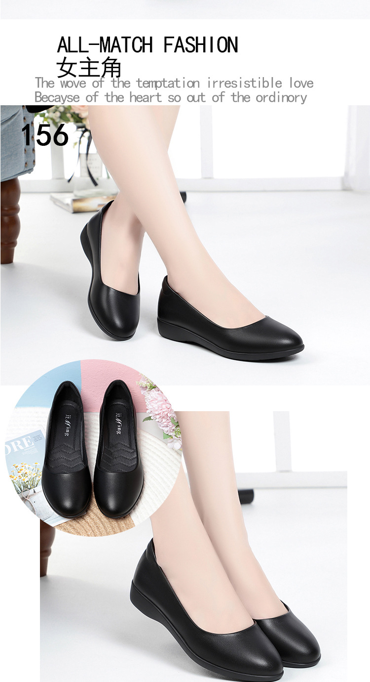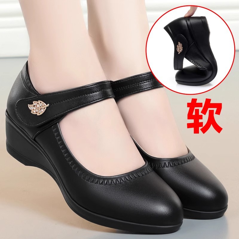 お母さんの靴と秋の新型の女性の靴は快適で柔らかい皮の深い口はカジュアルな女性の靴の中でハイヒールと柔らかい靴を合わせます。