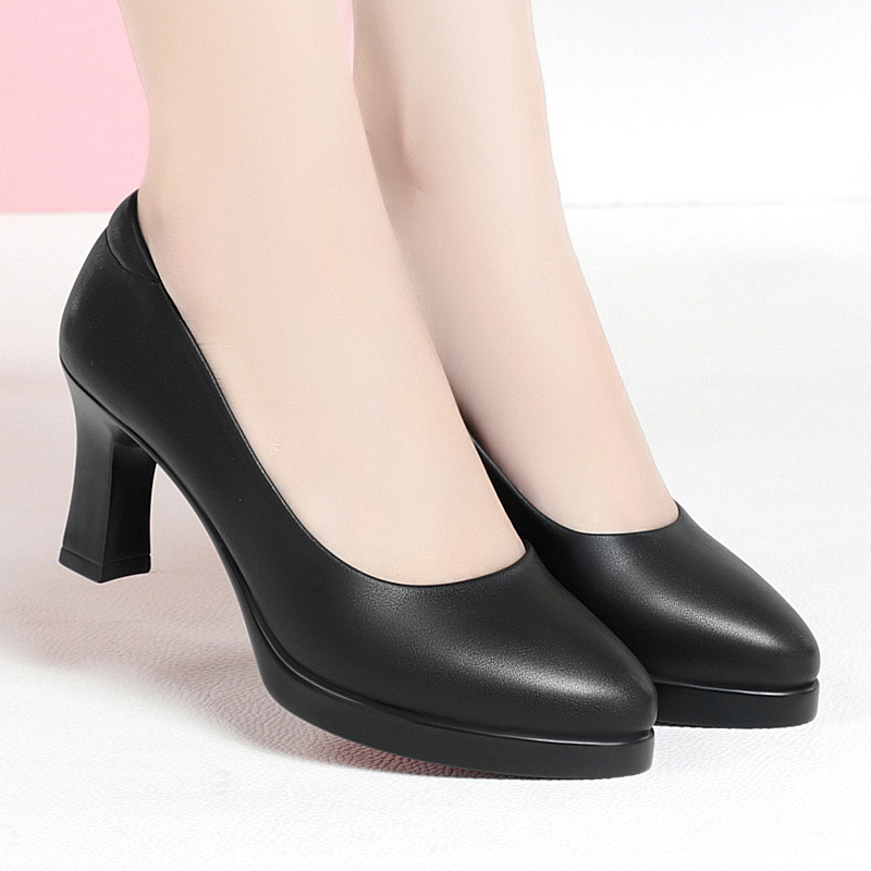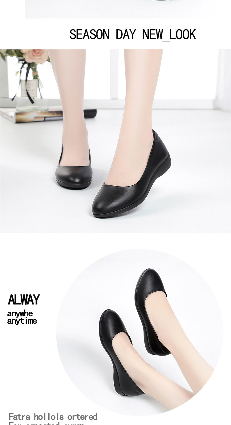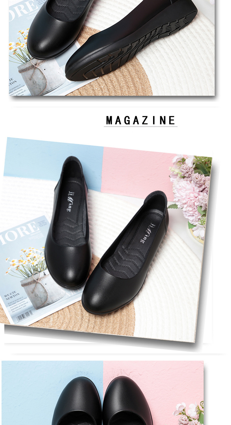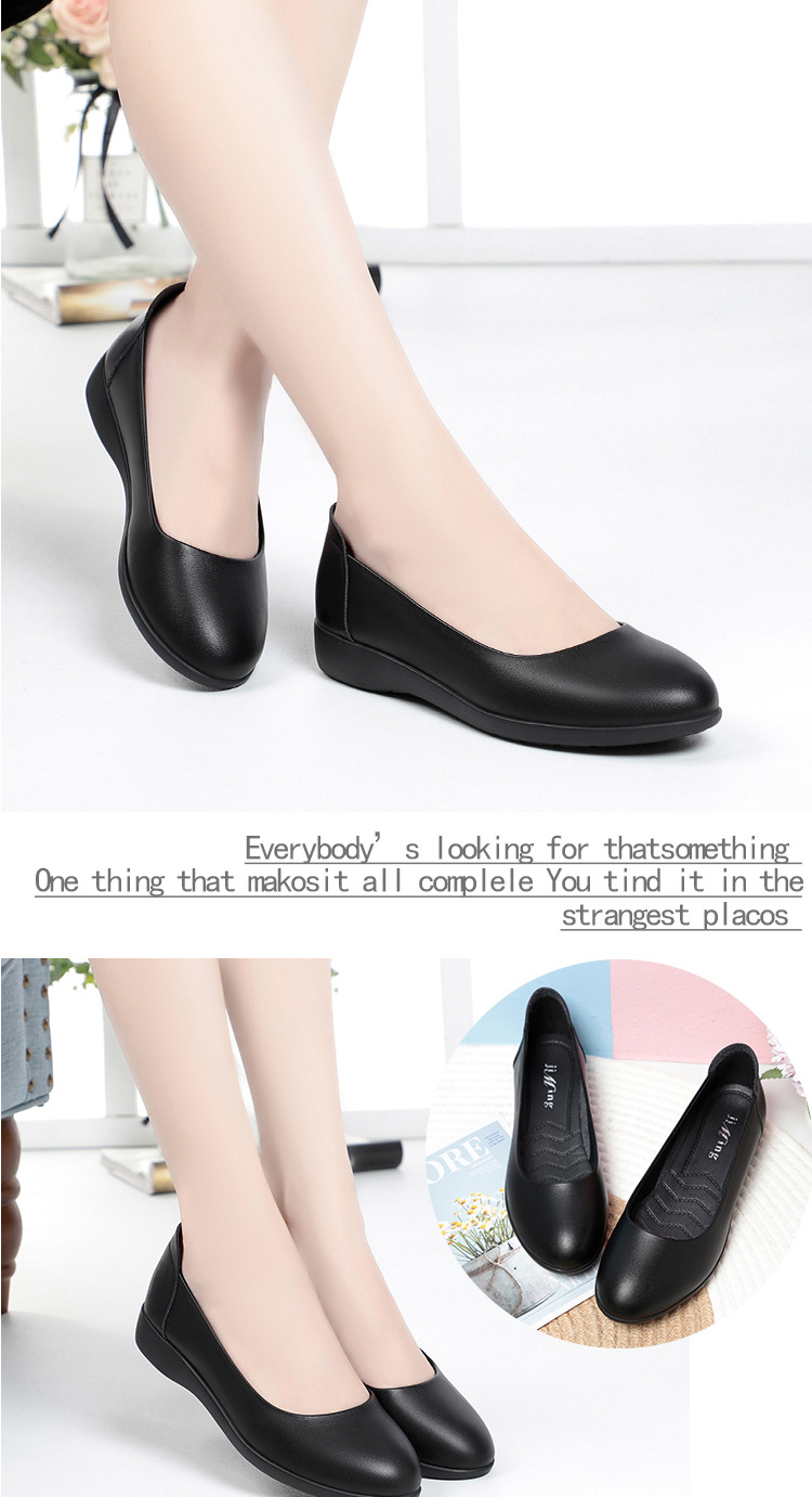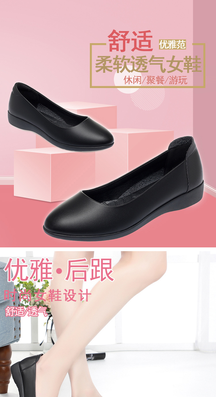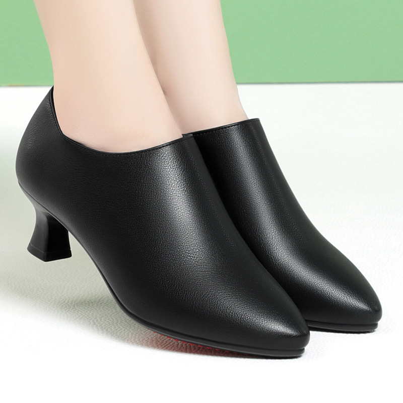 お母さんの靴と秋の新型の女性の靴は快適で柔らかい皮の深い口はカジュアルな女性の靴の中でハイヒールと柔らかい靴を合わせます。