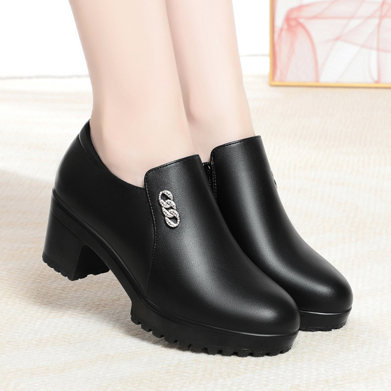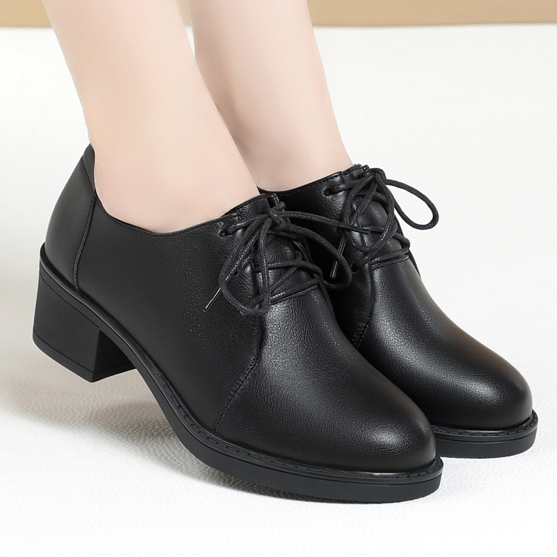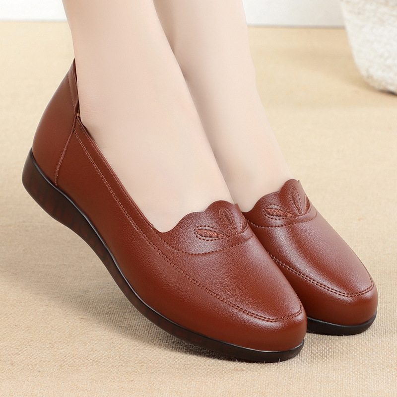 柔らかい底の柔らかい皮の太いかかとの中で靴の中年のお母さんの靴の2024の新型の春秋の通勤の百合のカジュアルな靴の女性