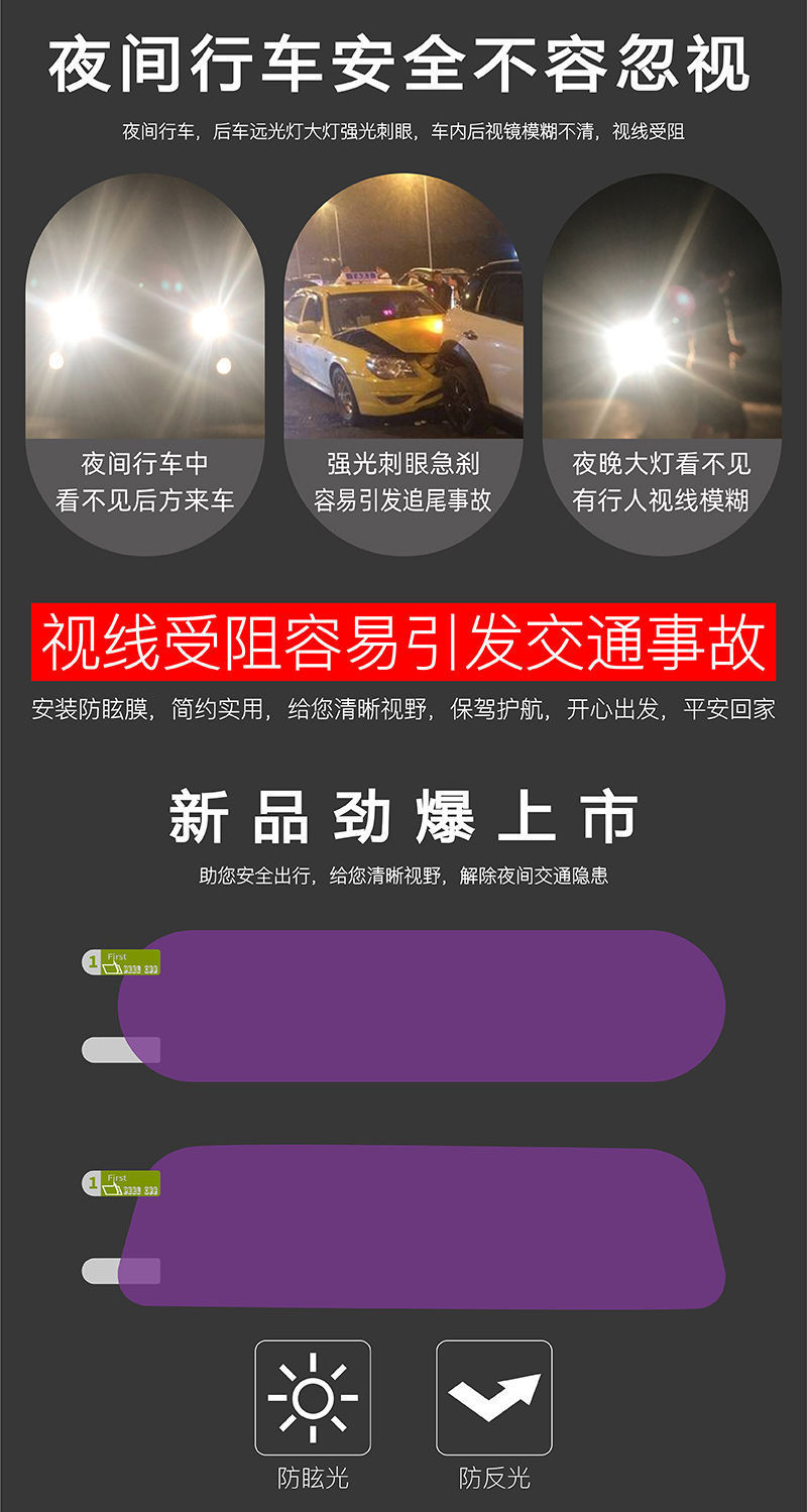 自動車車内バックミラー防グレア膜車内後視防強光膜は夜の安全走行用に適している