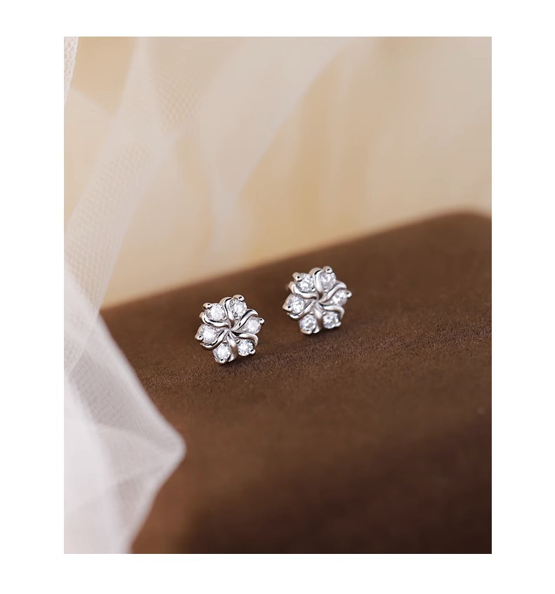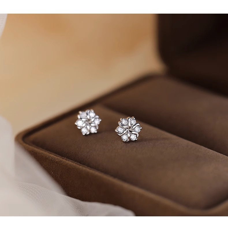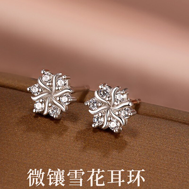 S999 純銀スノーフレークジルコンイヤリング、軽い高級感とハイエンド、多用途の耳ピアス、純銀イヤリング、ニッチデザインイヤリング