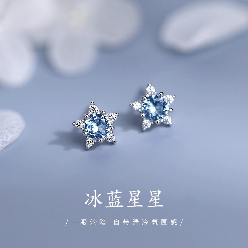 蓝色五角星耳钉女精致创意治愈感耳环简约甜美气质轻奢百搭耳饰品
