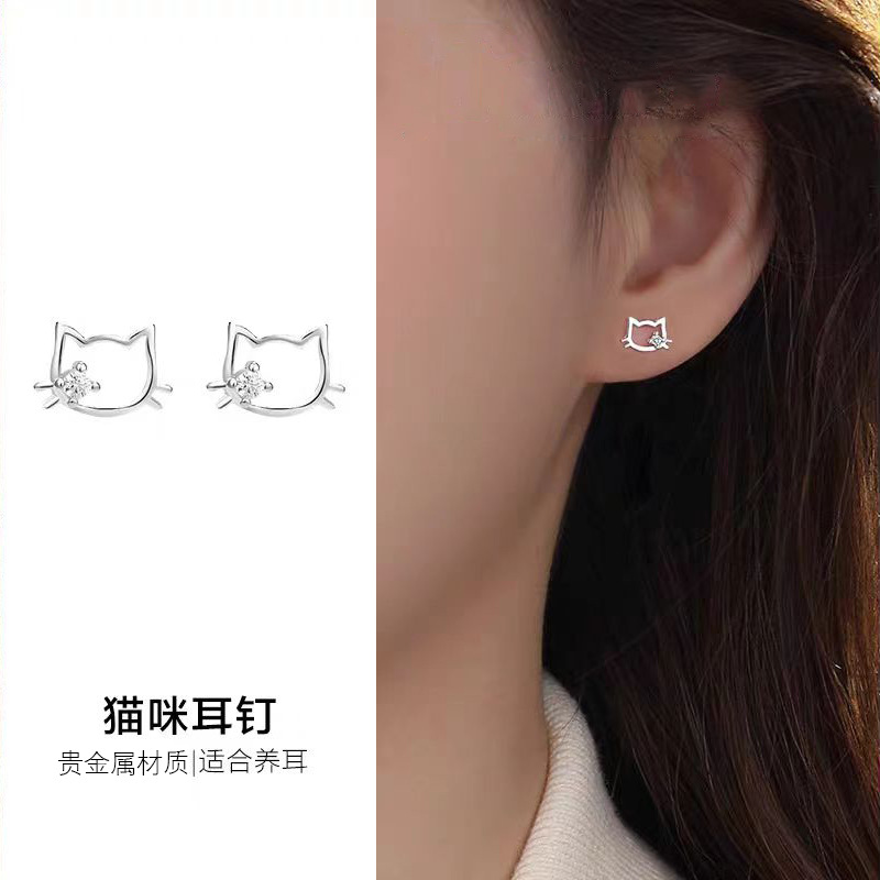 韩版猫咪耳钉女甜美可爱小巧百搭耳饰送女友闺蜜日常百搭通勤耳环