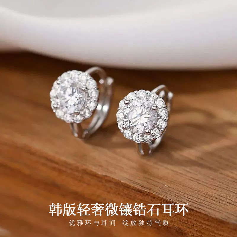 韓国版のシンプルなジルコンの丸い耳のボタンの女性の軽い豪華な大衆の高級感のイヤリングの気質の冷たい風の新型の潮の耳飾り