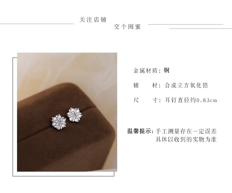 ジルコン秋冬雪花ピアス女性耳穴ピアス小衆デザイン感高級小型冷淡風イヤリング2022