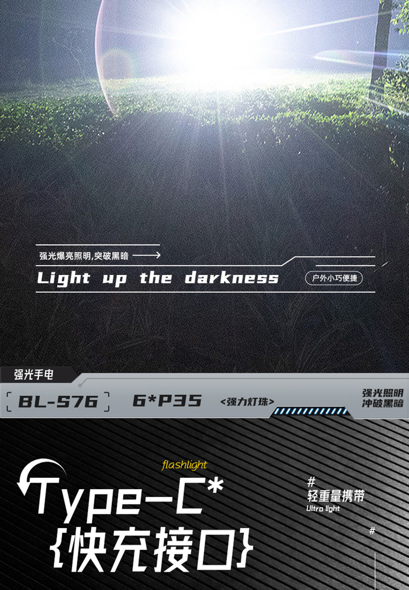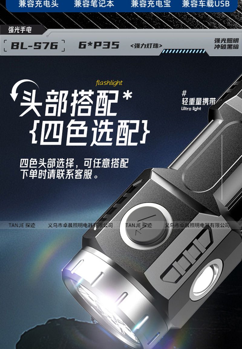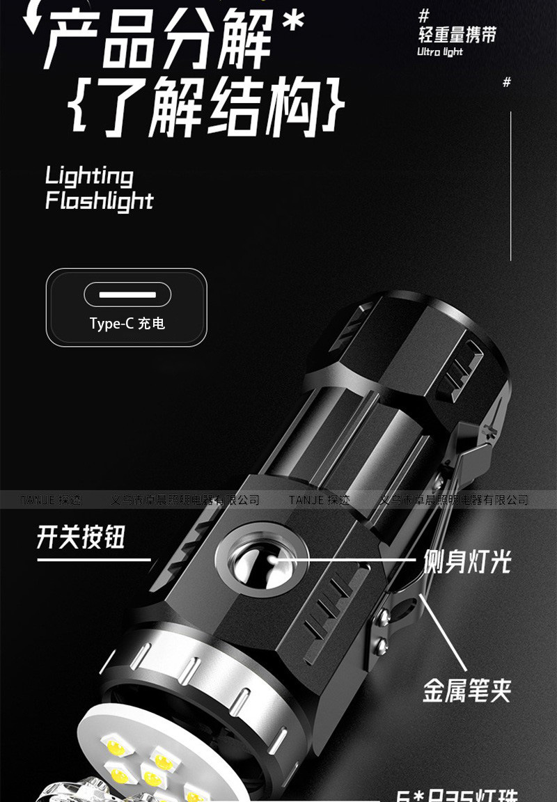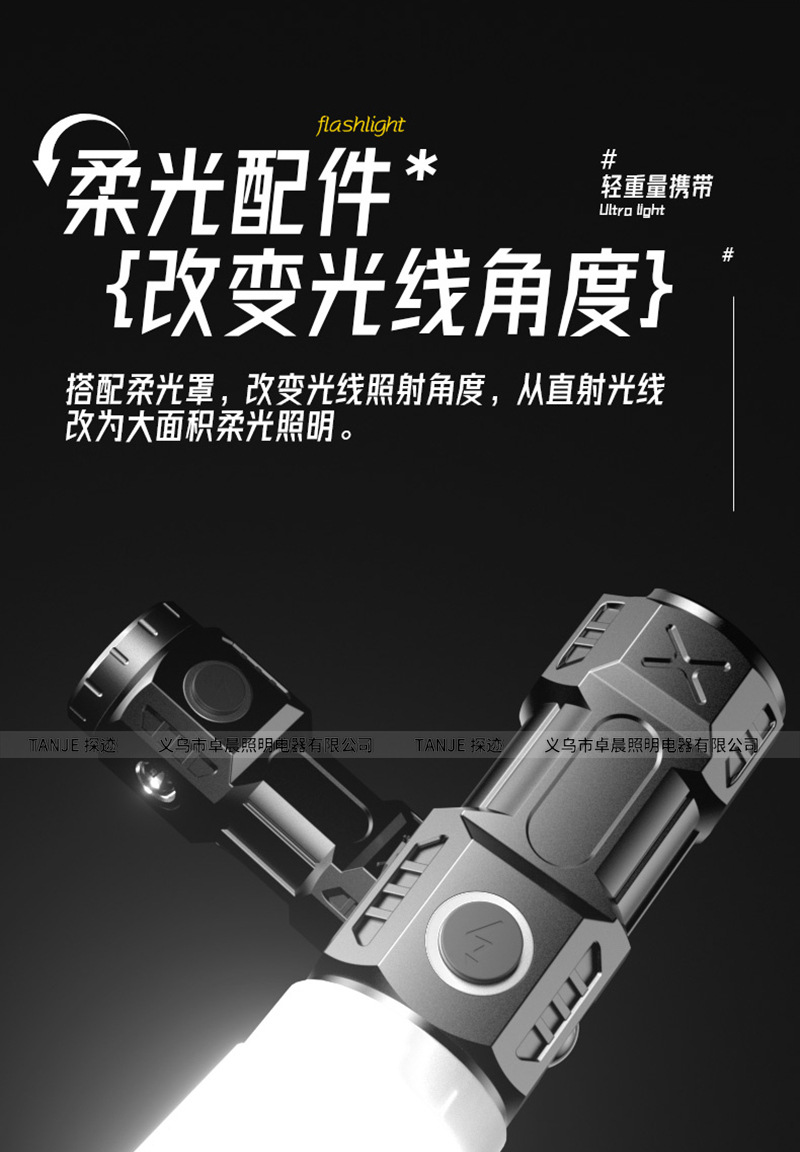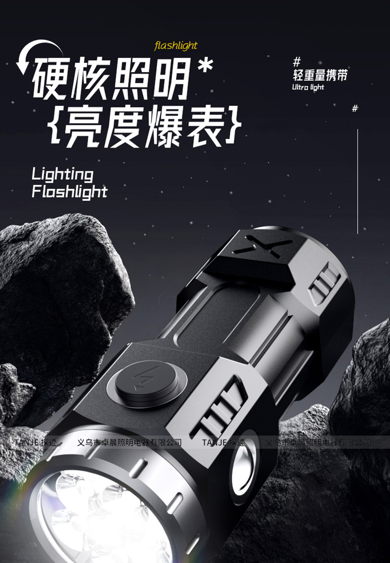 手电筒便携式户外可充电登山家用潮流多功能灯供应链工厂跨境批发