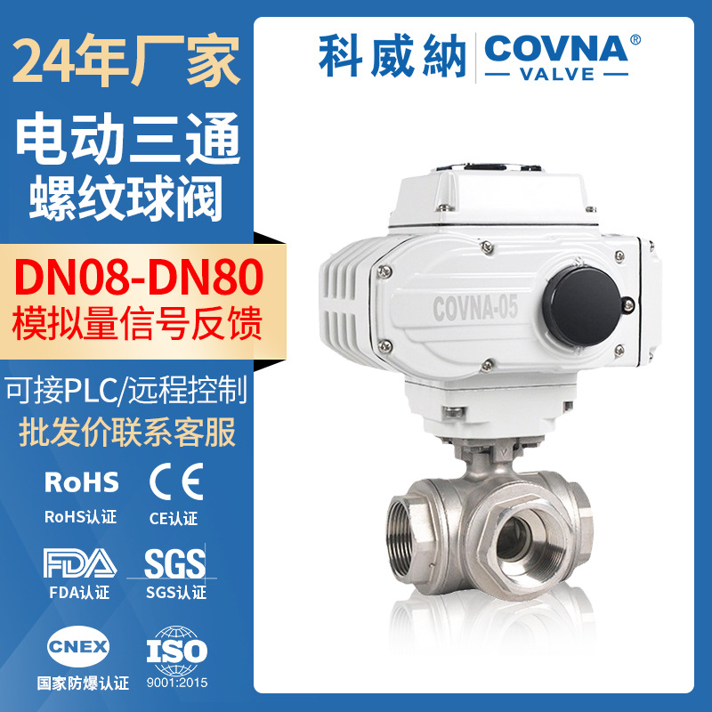 スポットステンレス電動三方ボールバルブt型l型ねじボールバルブ24v220v380v電動三方ボールバルブ