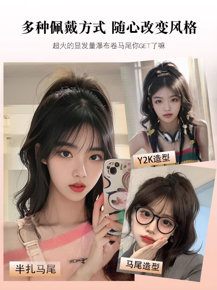 马尾假发女御姐风高颅顶假发抓夹式辣妹蓬松增发量短马尾假发辫子