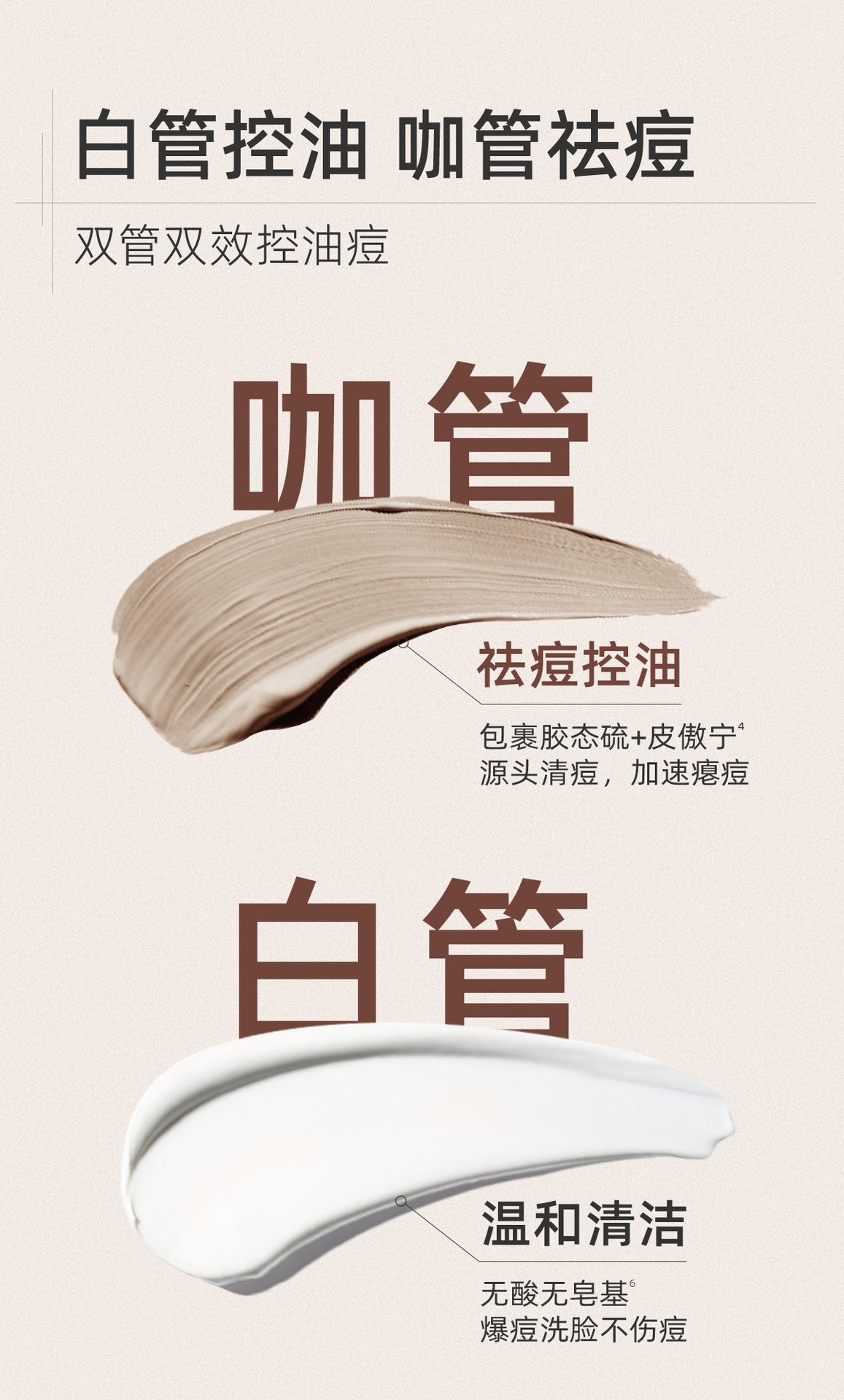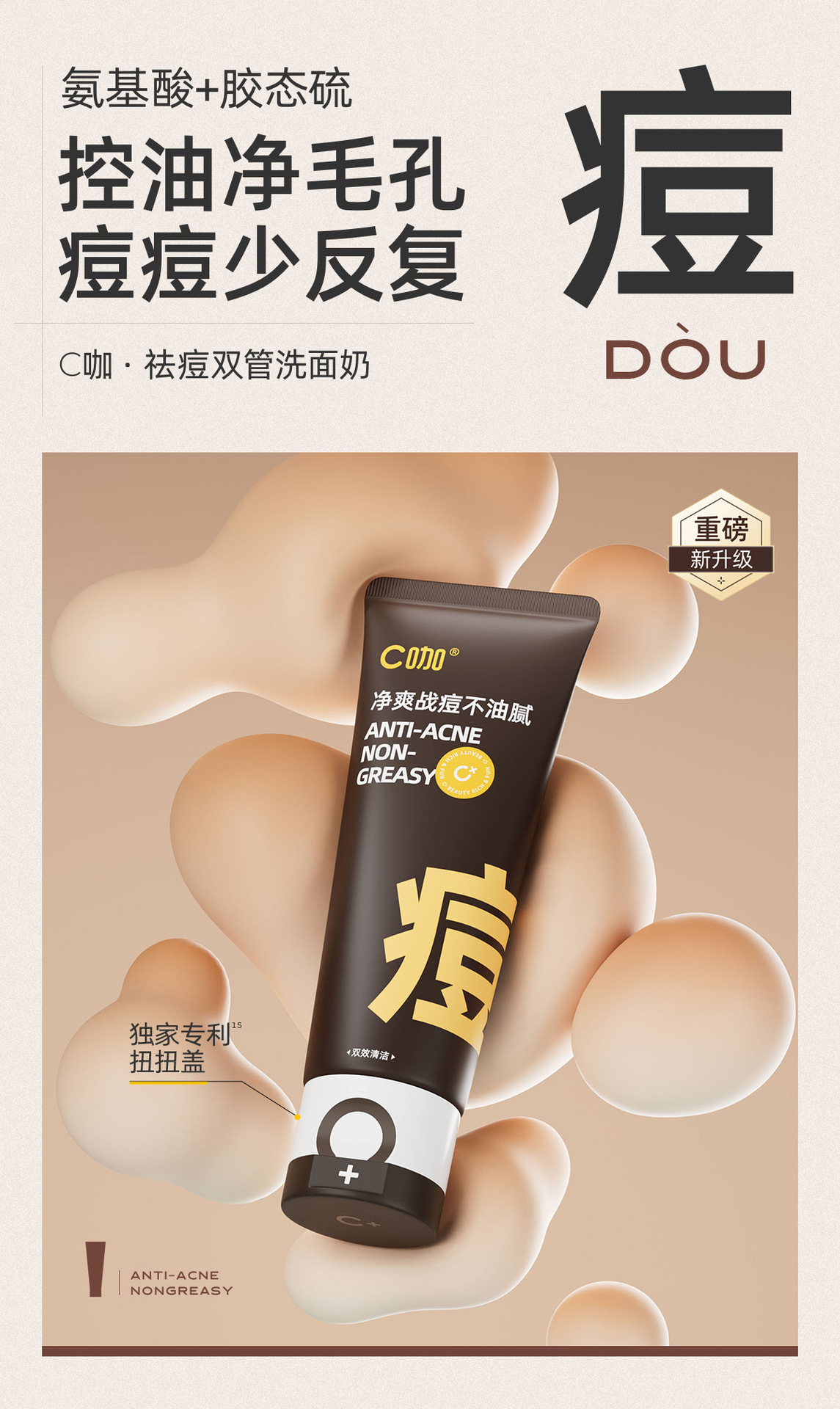 C咖胶态硫控油净痘氨基酸双管洗面奶清洁祛痘肌油皮洁面乳灰白管