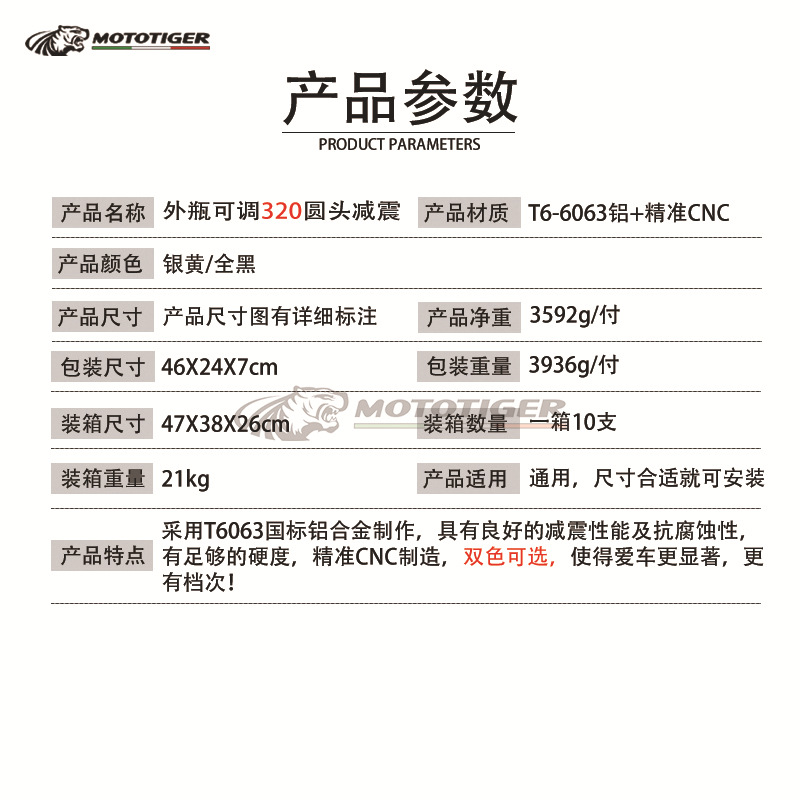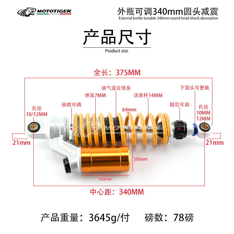 オートバイ部品改造ボトル付きダンパー電気自動車共通320/340/360mm丸頭後ダンパー