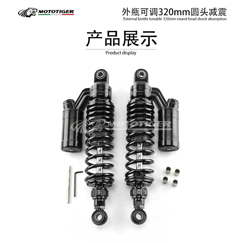 摩托车减震器改装后减震320MM长度 可调节阻尼24档叉头黑弹簧避震