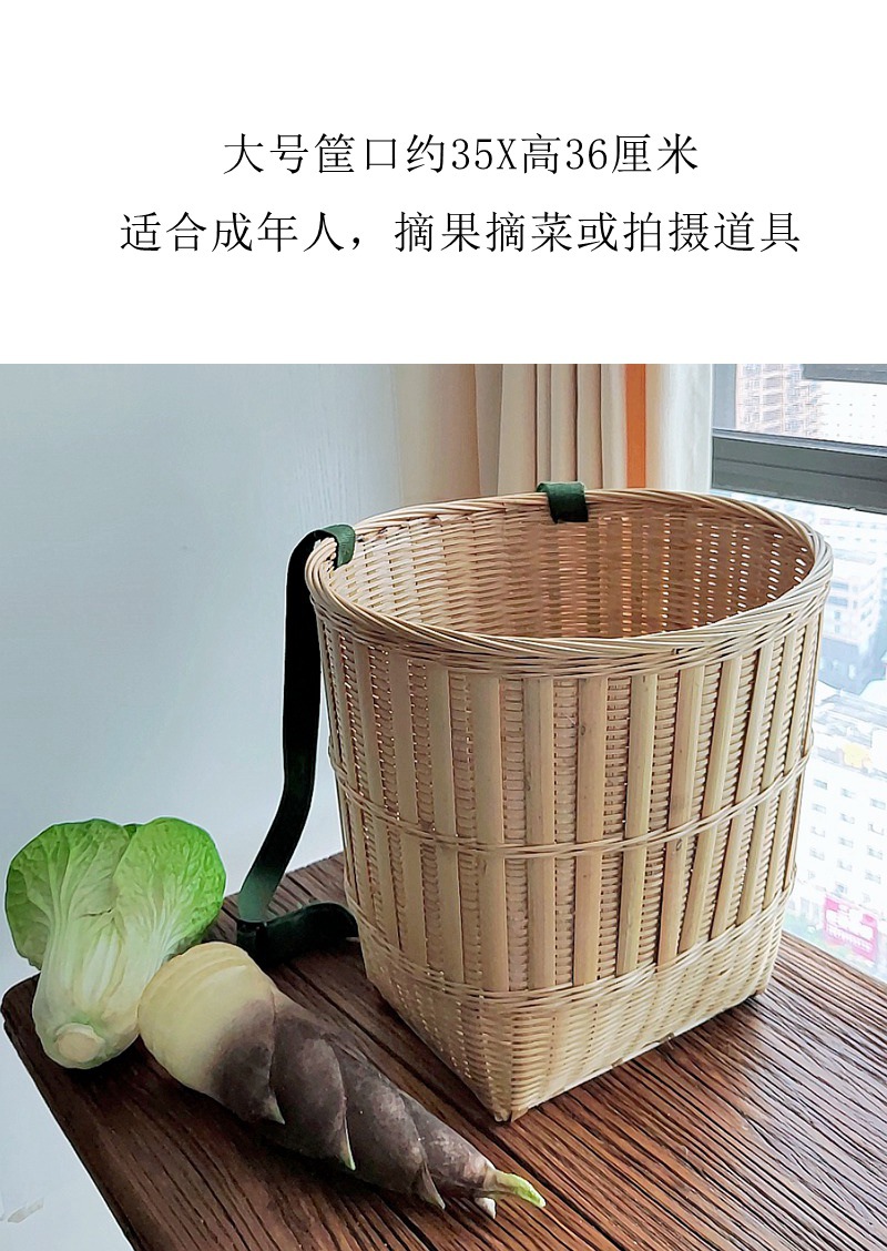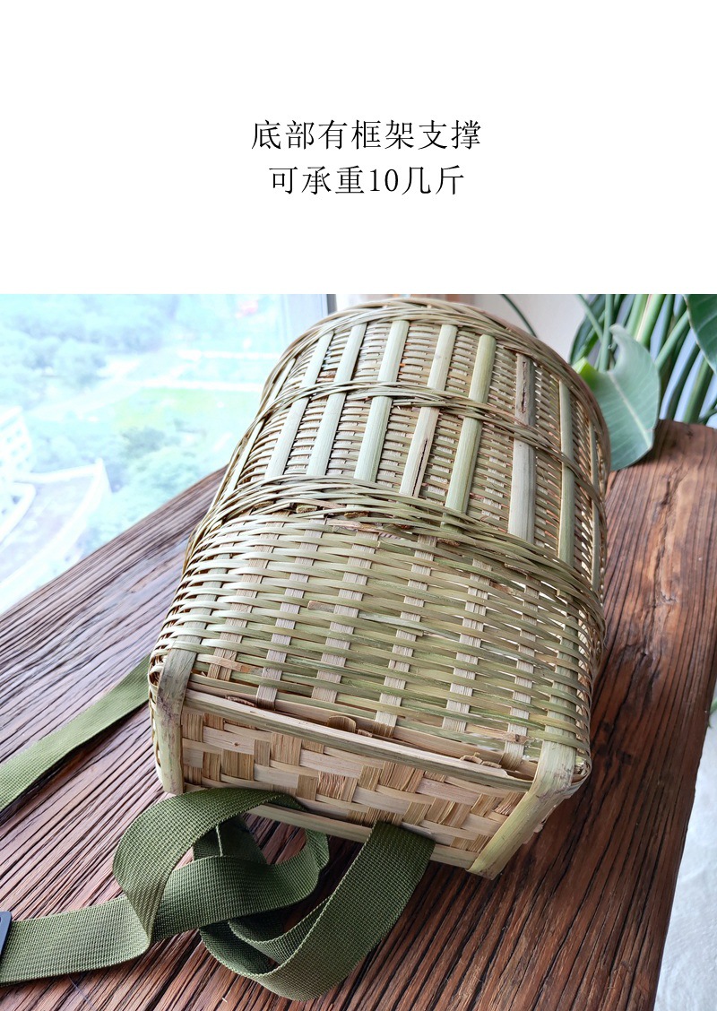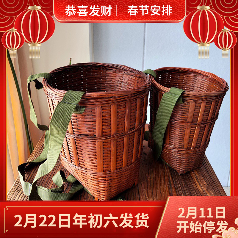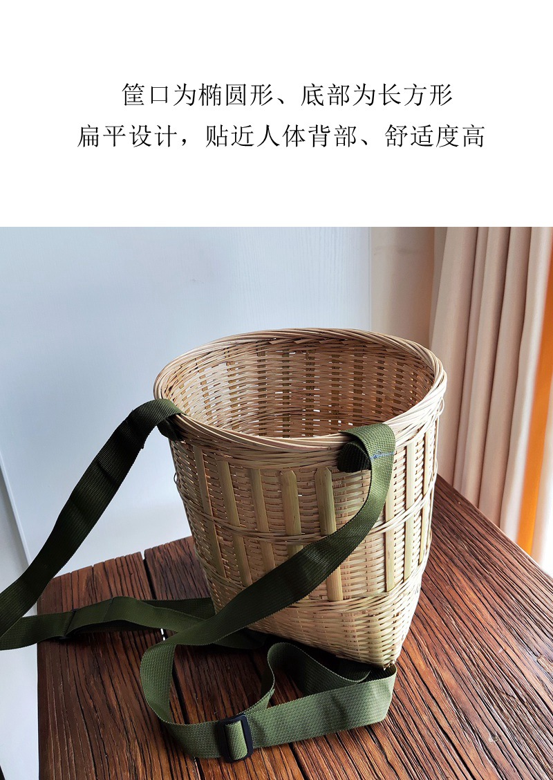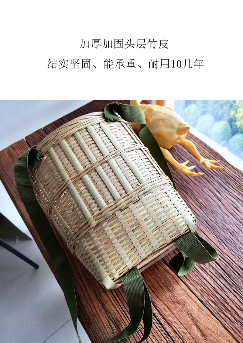 扁平竹编背篓加厚头层竹皮背带收纳筐采茶叶竹篓采摘瓜果纯手工