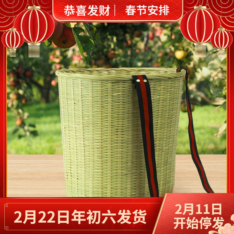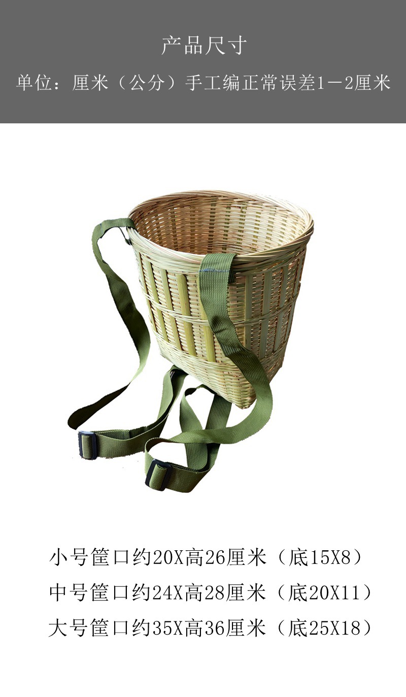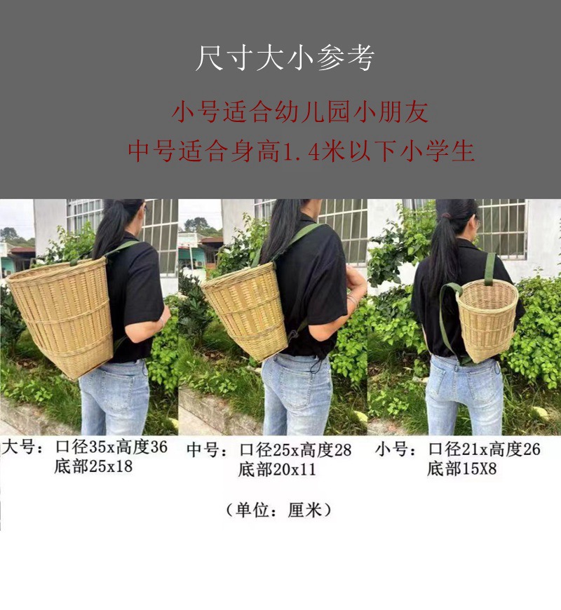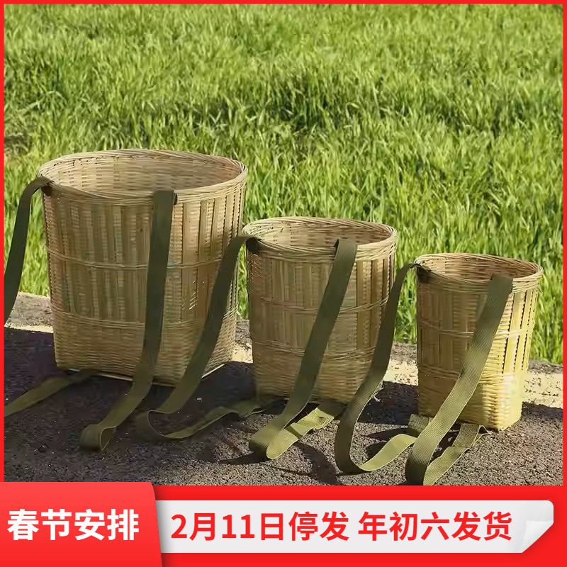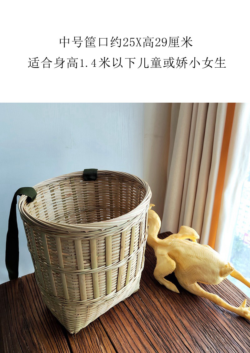 扁平竹编背篓加厚头层竹皮背带收纳筐采茶叶竹篓采摘瓜果纯手工