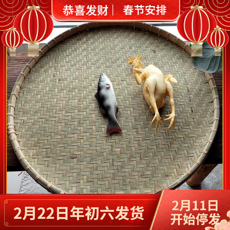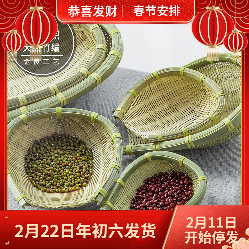 白藤鎖辺頭層竹皮箕竹編み干し神器円形平底竹かご手編み竹石版竹製品