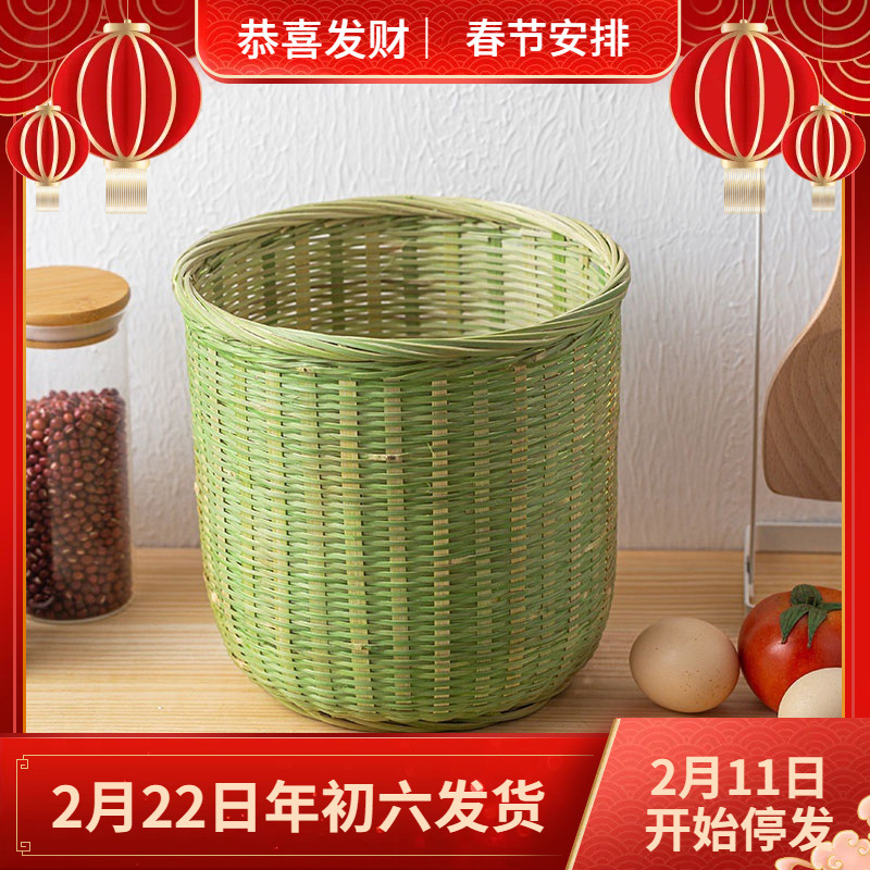 手作り竹編みゴミ筒家庭用竹かご円形竹かご室内古紙収納かご台所収納かご編み