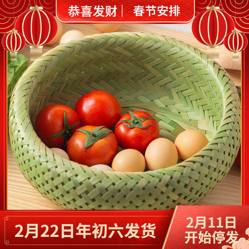 竹緑の果物かご、竹かご、竹かご、手作り竹製品、野菜かご、竹ふるい、平底丸まんかご
